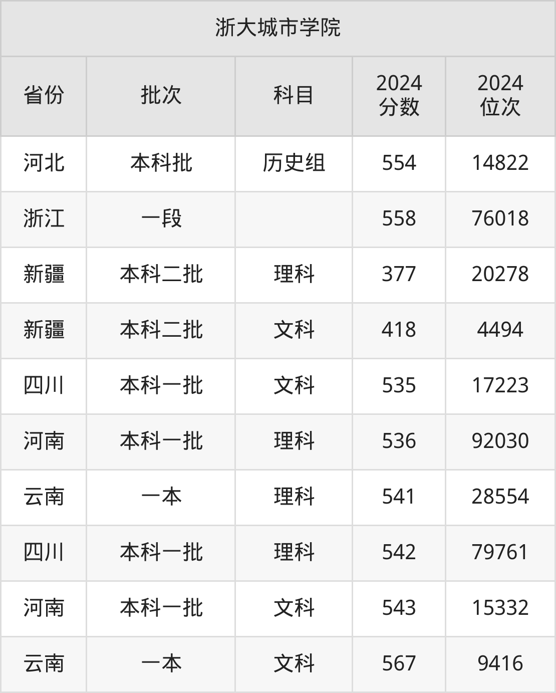 圆梦小编为2025届想要报考浙大城市学院的同学整理了:浙大城市学院2024年在全国16个省的最低分及录取位次。