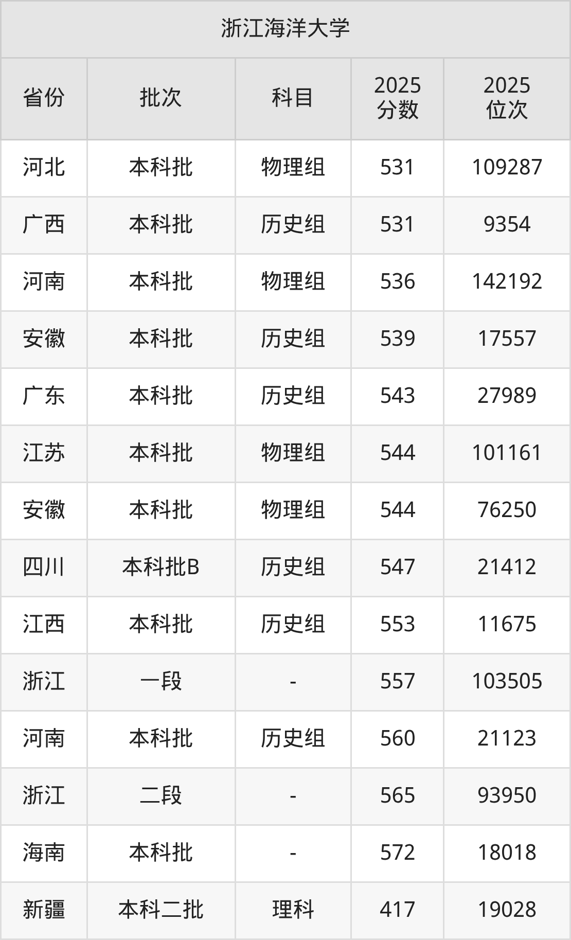 二、浙江海洋大学2025年录取分数线汇总