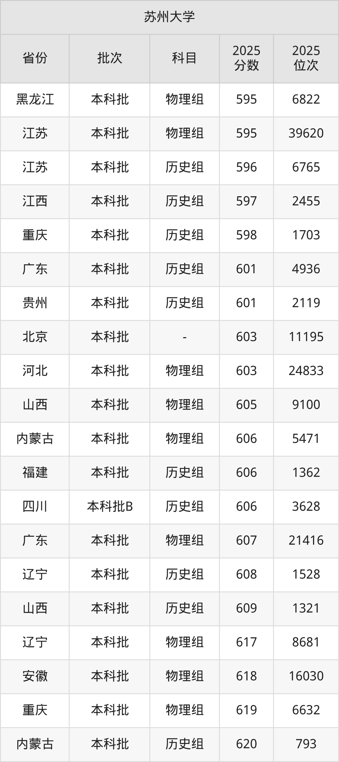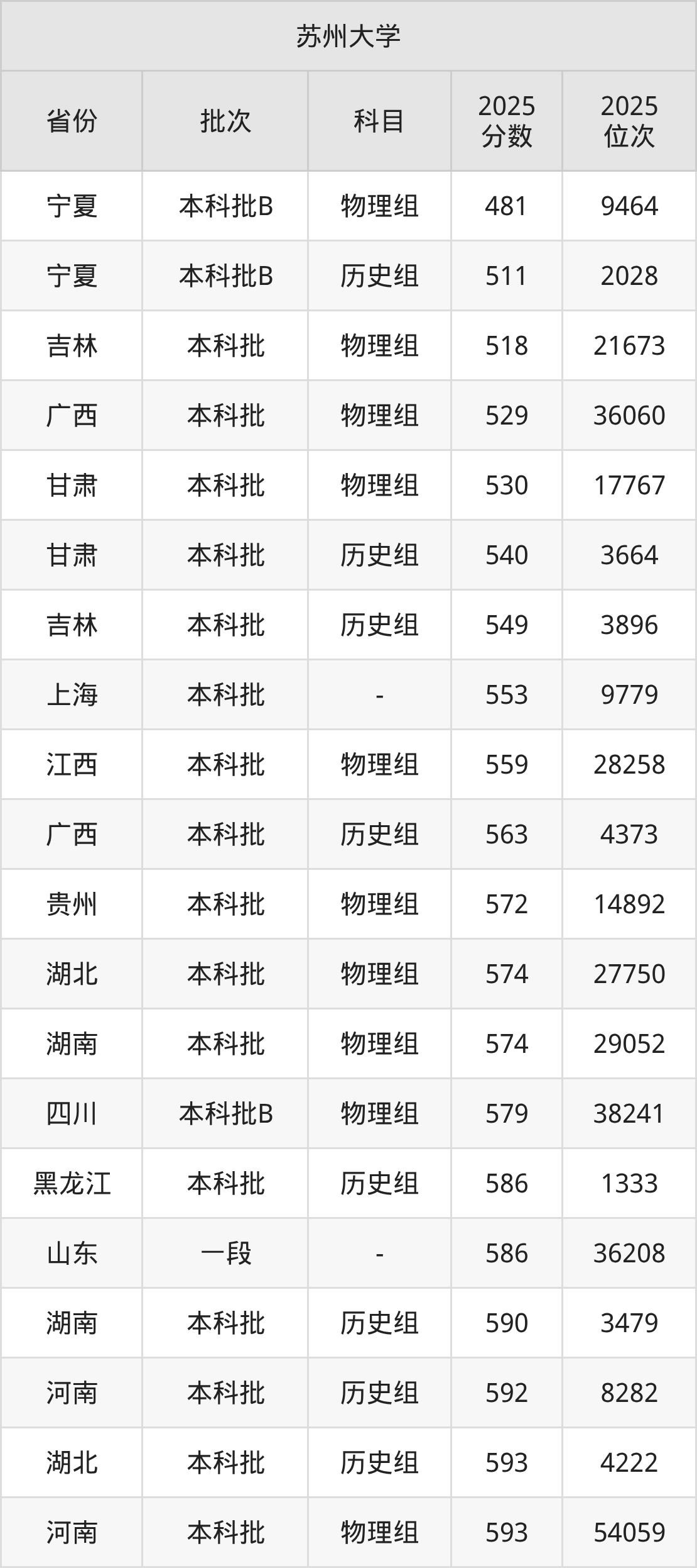 二、苏州大学2025年录取分数线汇总