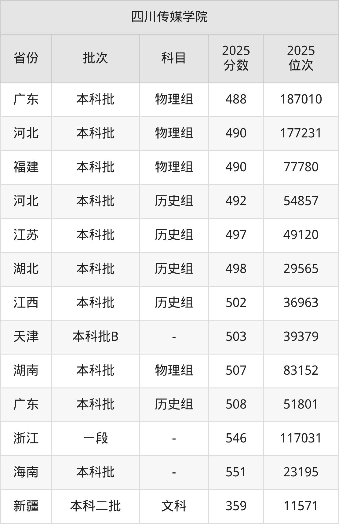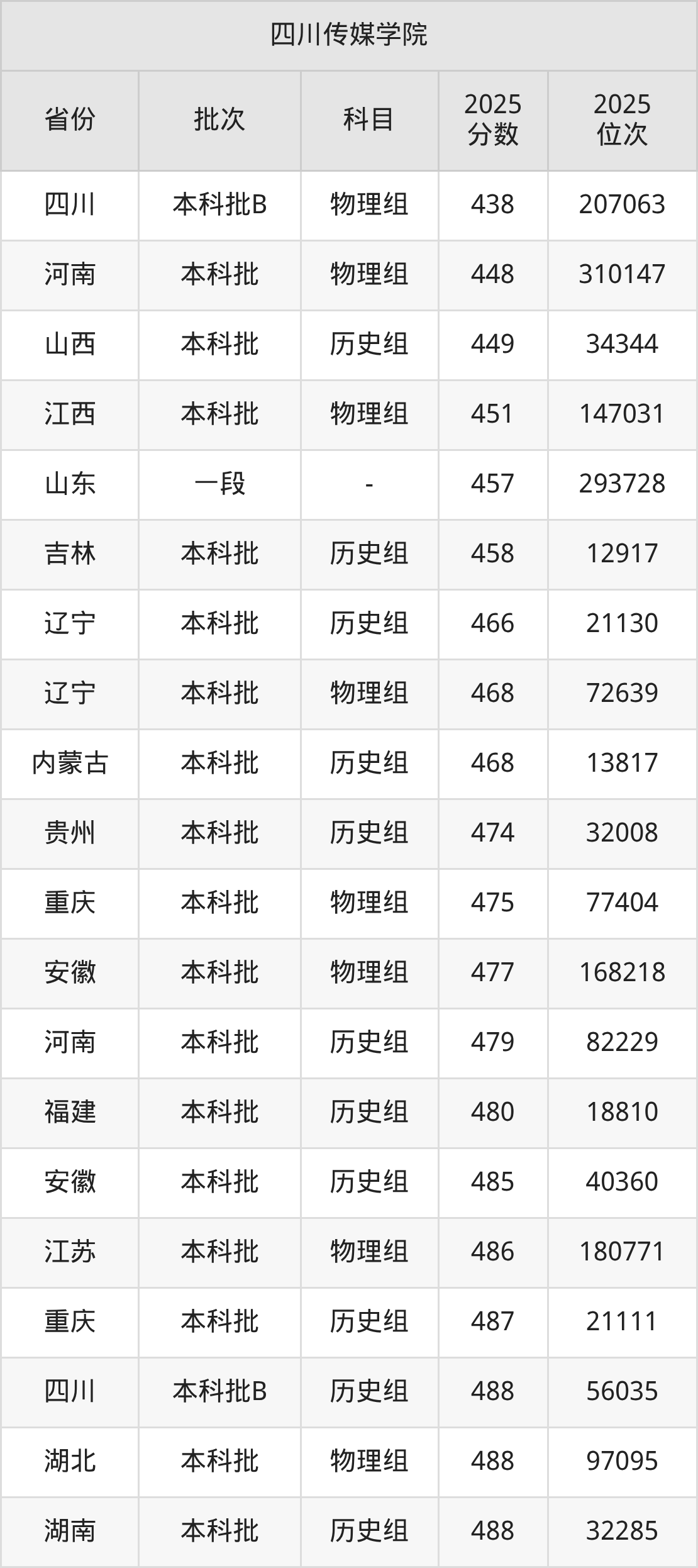 二、四川传媒学院2025年录取分数线汇总
