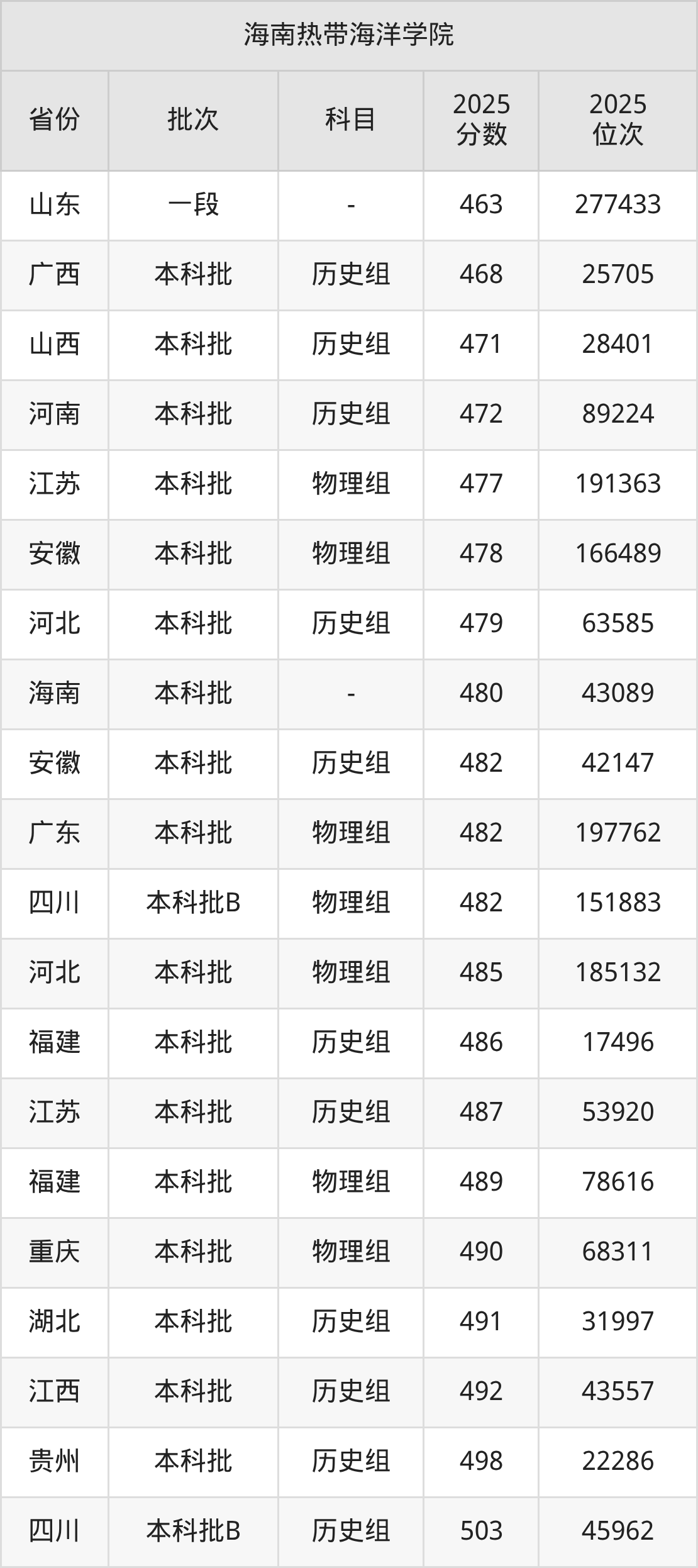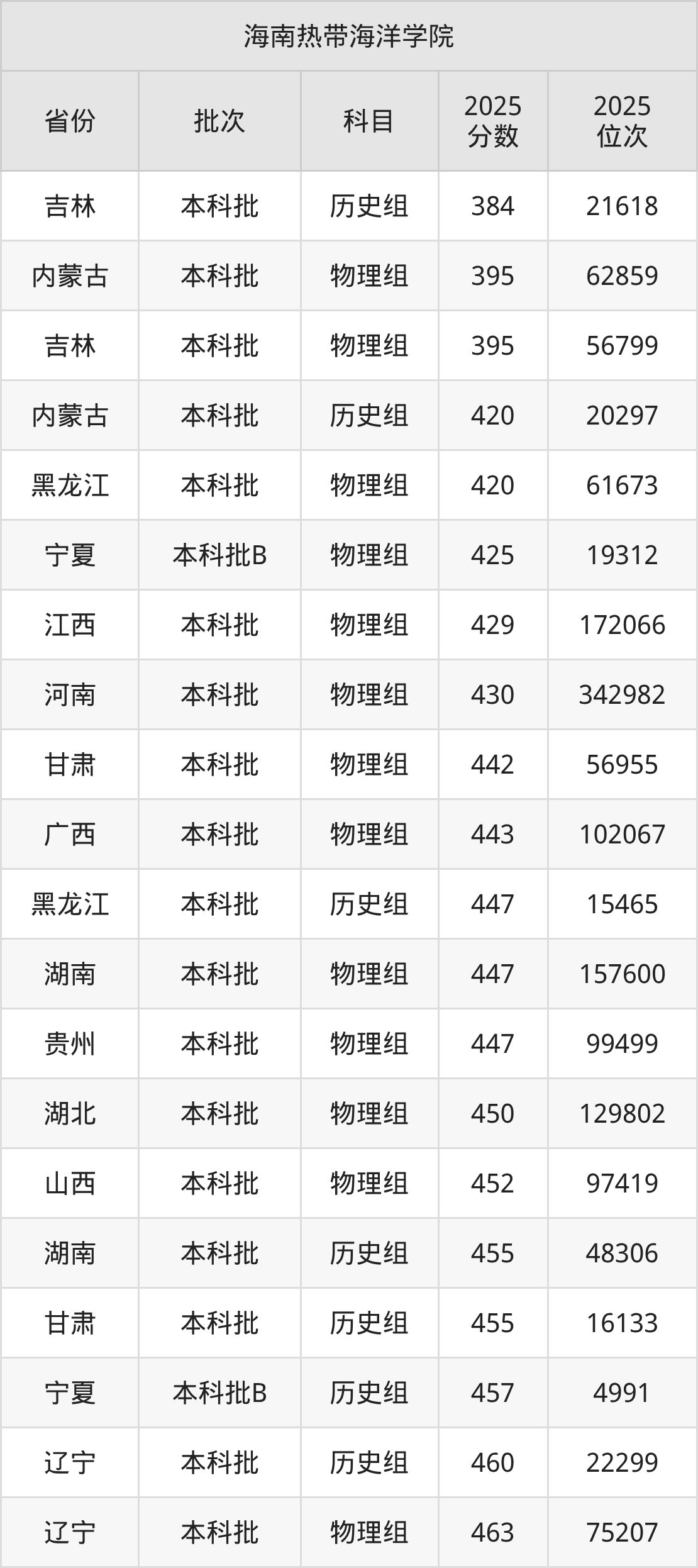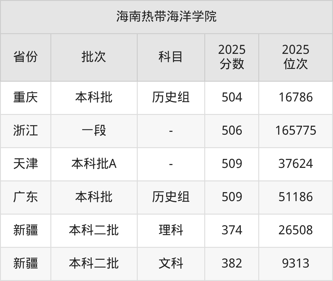 二、海南热带海洋学院2025年录取分数线汇总