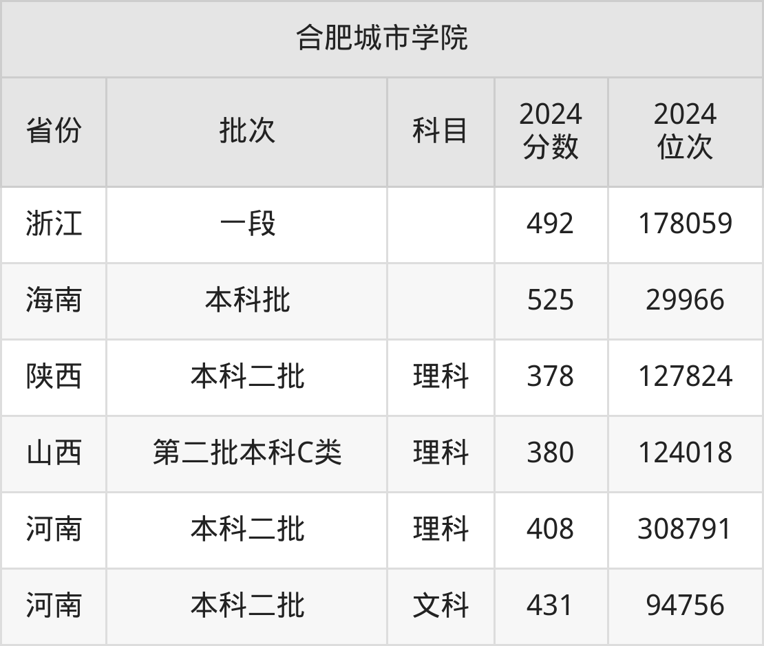 圆梦小编为2025届想要报考合肥城市学院的同学整理了:合肥城市学院2024年在全国19个省的最低分及录取位次。