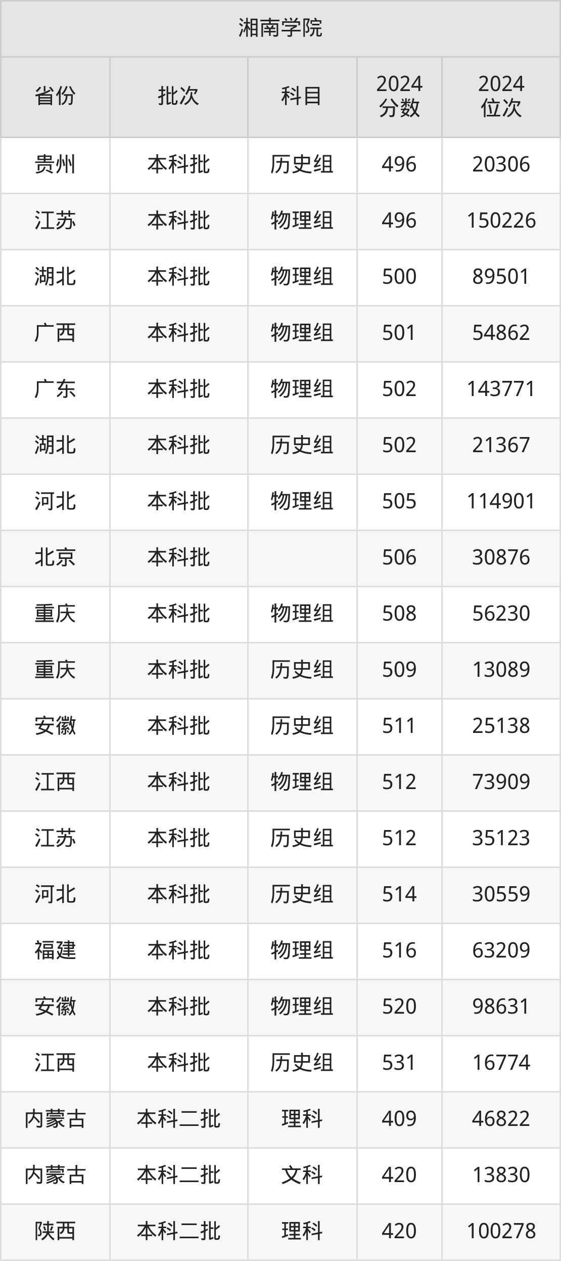 圆梦小编为2025届想要报考湘南学院的同学整理了:湘南学院2024年在全国27个省的最低分及录取位次。