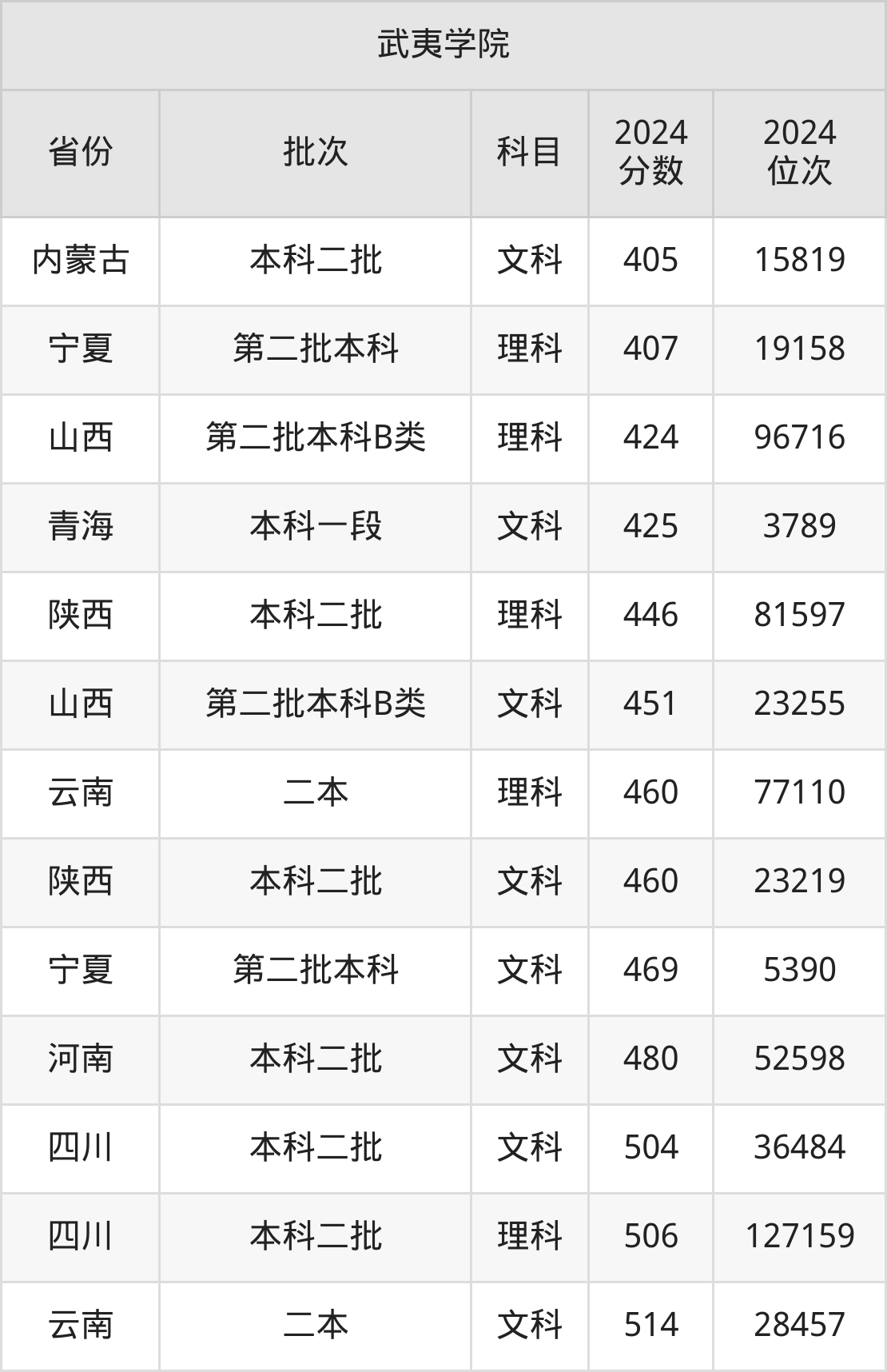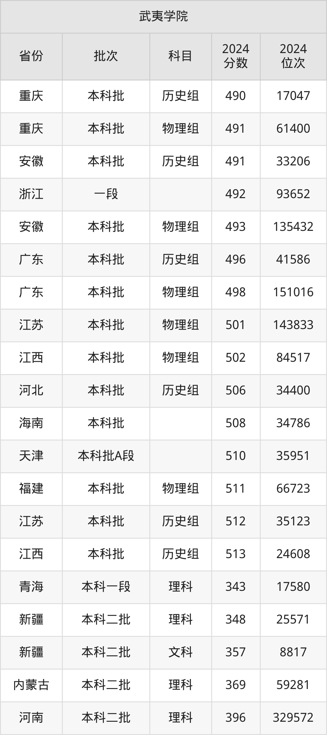 二、武夷学院2024年录取分数线汇总