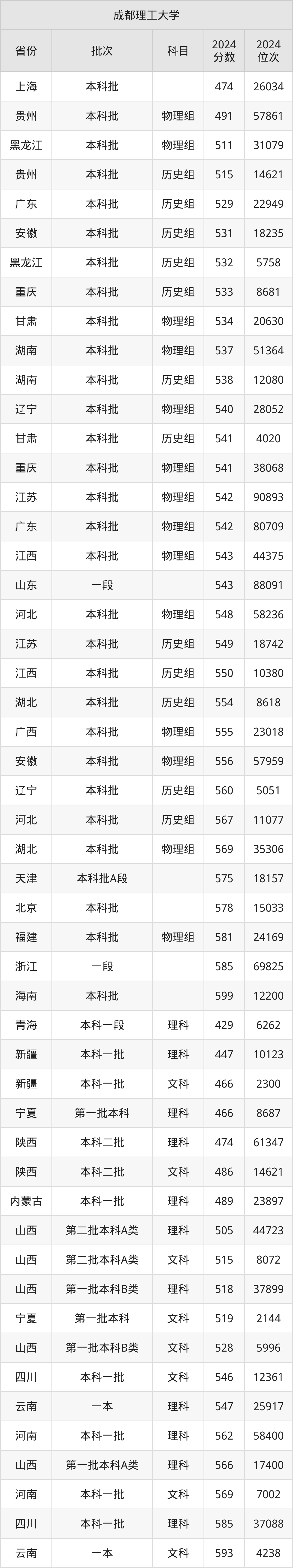 圆梦小编为2025届想要报考成都理工大学的同学整理了:成都理工大学2024年在全国29个省的最低分及录取位次。