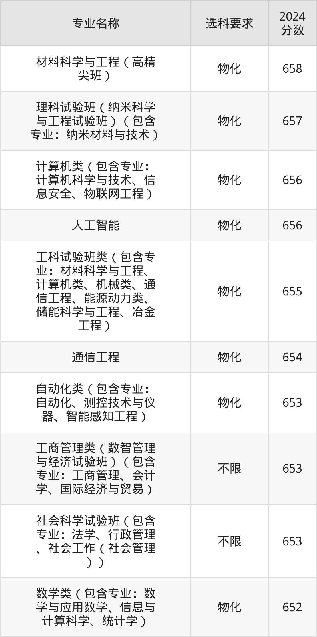 | 工科试验班类(包含专 业:材料科学与工程、 计算机类、机械类、通 信工程、能源动力类、 储能科学与工程、冶金 工程) | 物化 | 626 |