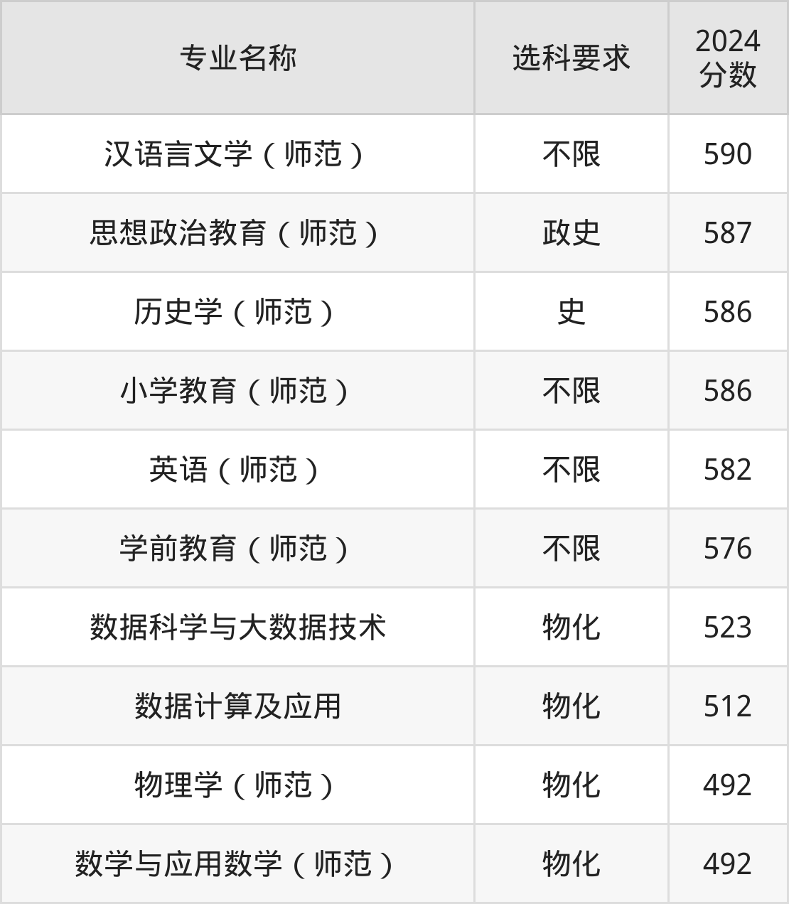 | 专业名称 | 选科要求 | 2024 分数 |