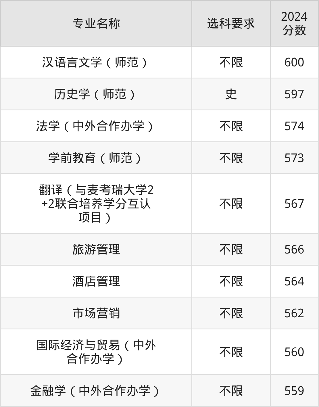 | 专业名称 | 选科要求 | 2024 分数 |