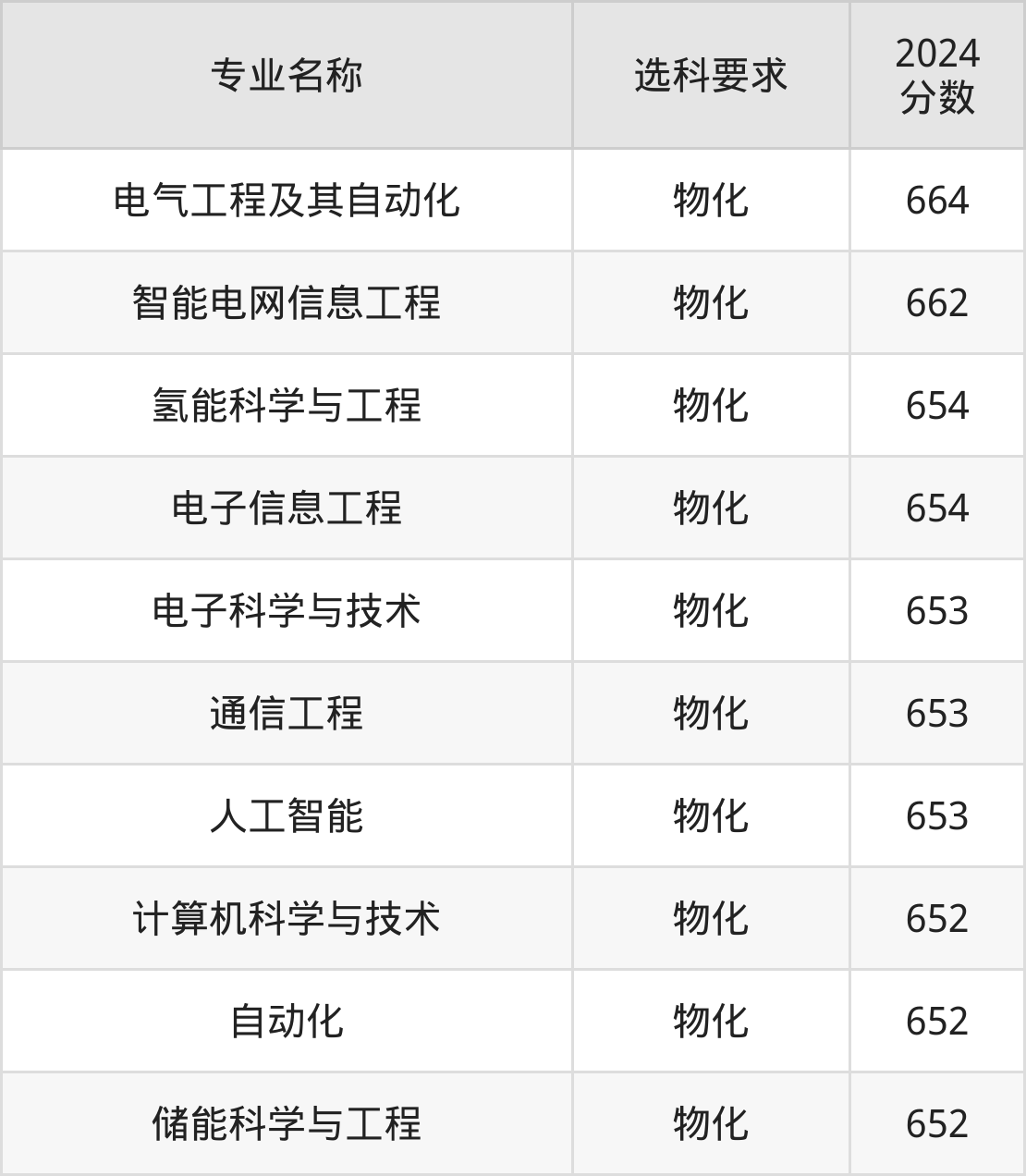 | 专业名称 | 选科要求 | 2024 分数 |