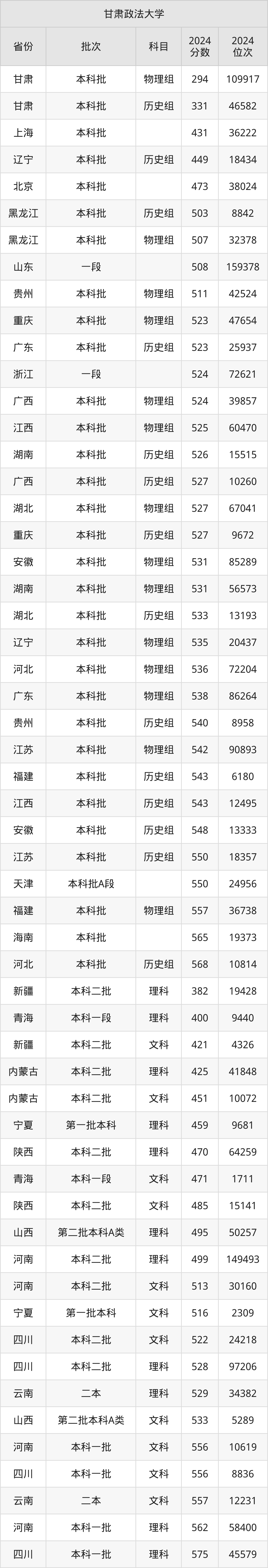 在甘肃本科批物理组,甘肃政法大学的最低分是294、最低录取位次是109917名。在上海本科批,甘肃政法大学的最低分是431、最低录取位次是36222名。
