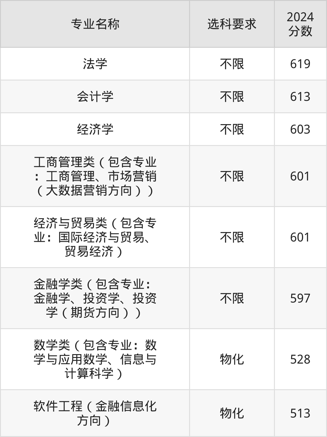 | 金融学类(包含专业: 金融学、投资学、投资 学(期货方向)) | 不限 | 561 |