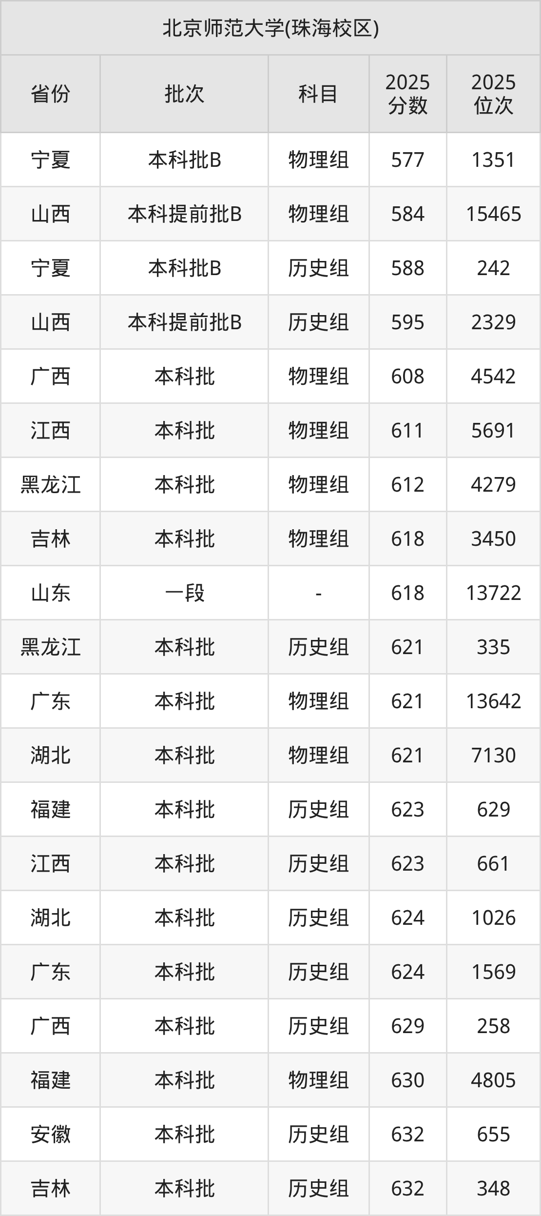 圆梦小编为2026届想要报考北京师范大学(珠海校区)的同学整理了:北京师范大学(珠海校区)2025年在全国17个省的最低分及录取位次。