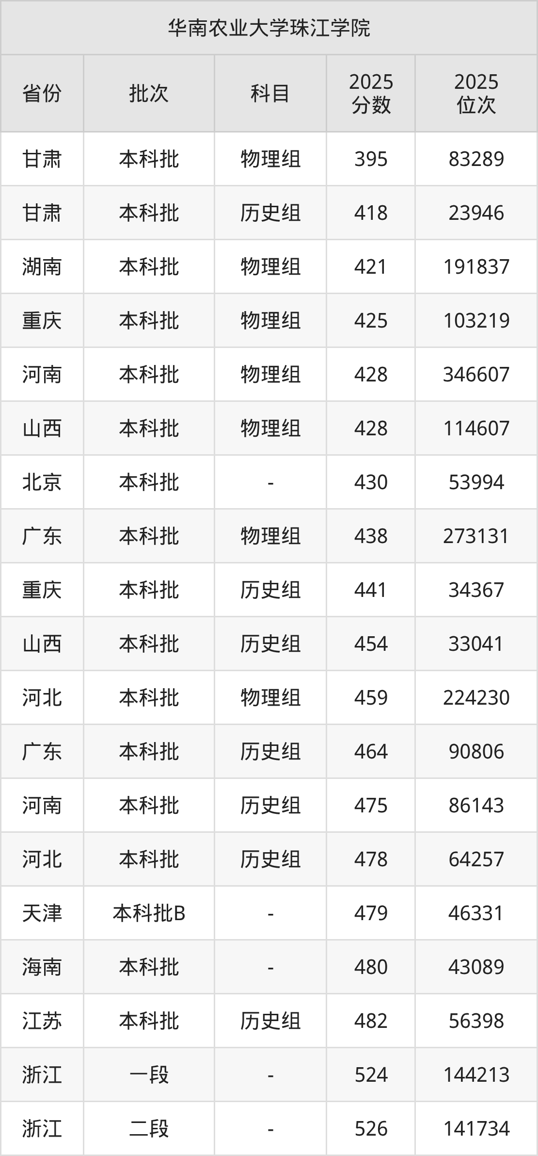 二、华南农业大学珠江学院2025年录取分数线汇总