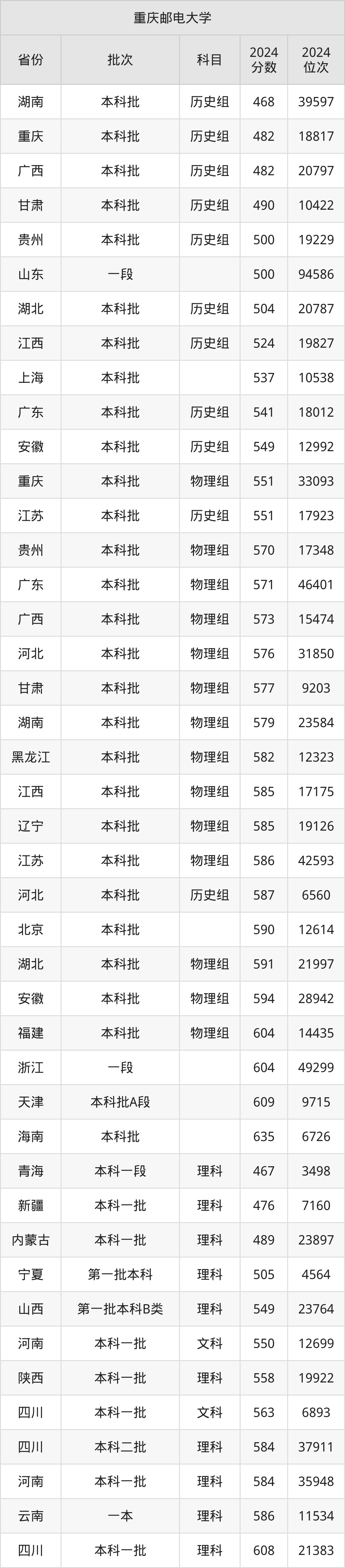 在湖南本科批历史组,重庆邮电大学的最低分是468、最低录取位次是39597名。在重庆本科批历史组,重庆邮电大学的最低分是482、最低录取位次是18817名。