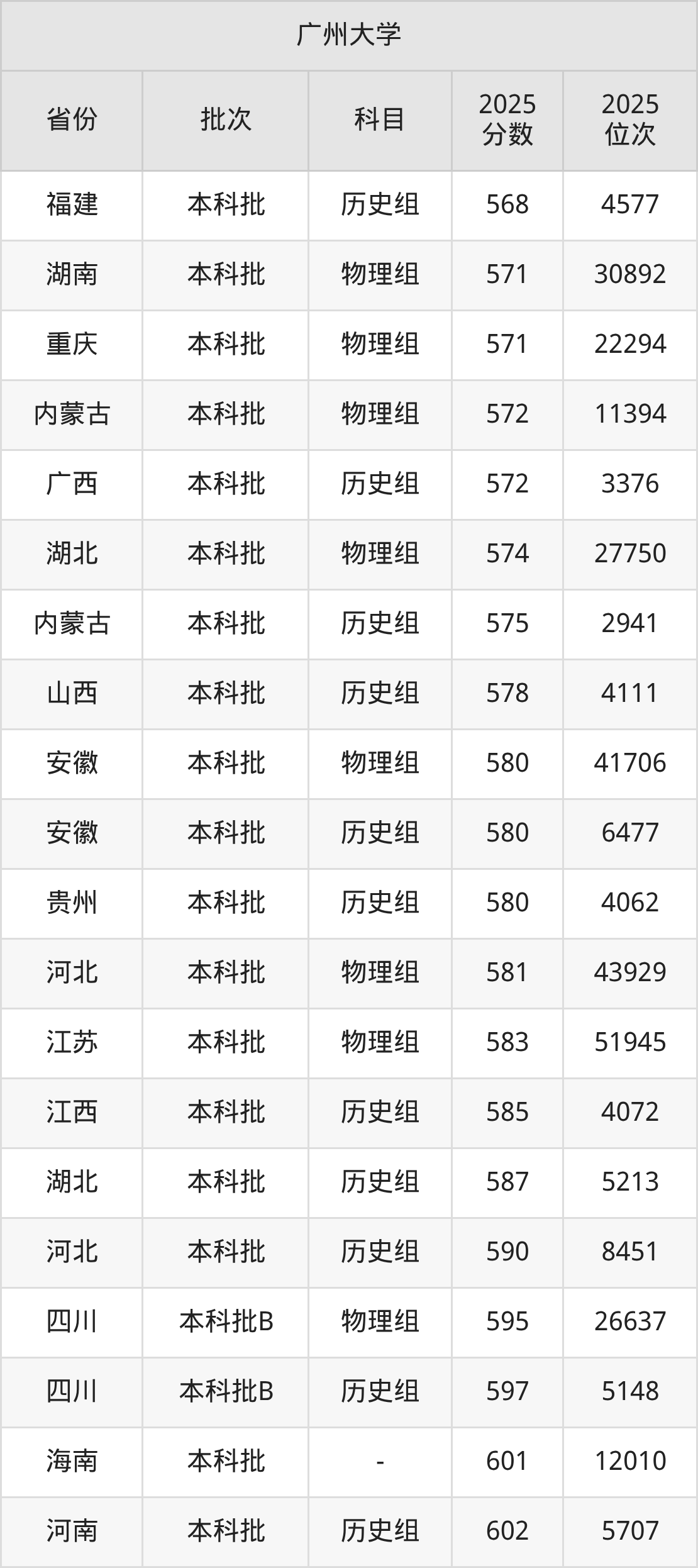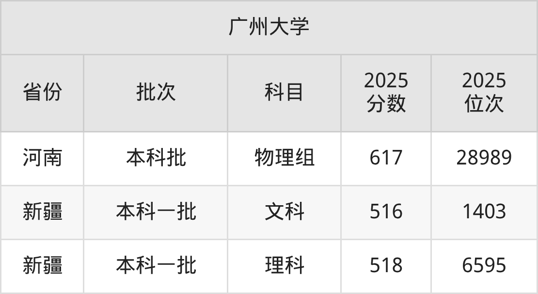 圆梦小编为2026届想要报考广州大学的同学整理了:广州大学2025年在全国23个省的最低分及录取位次。