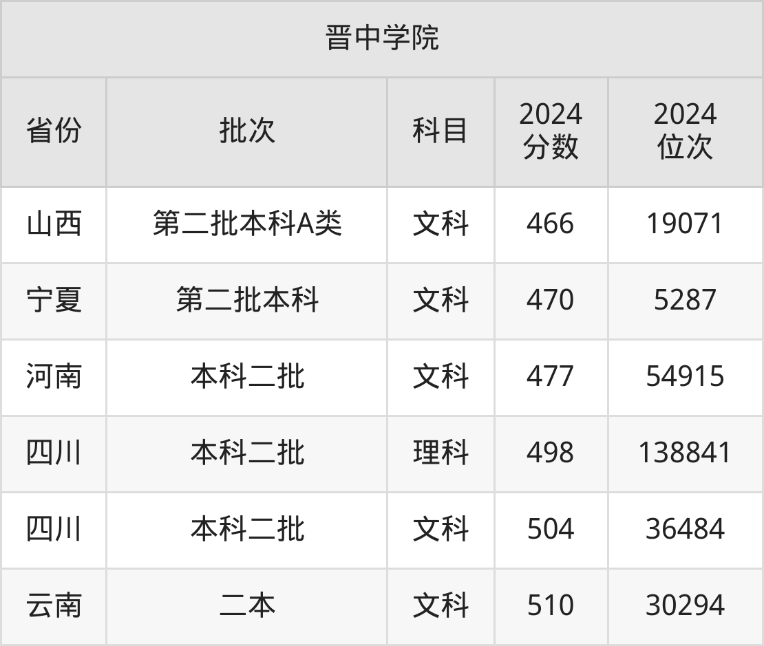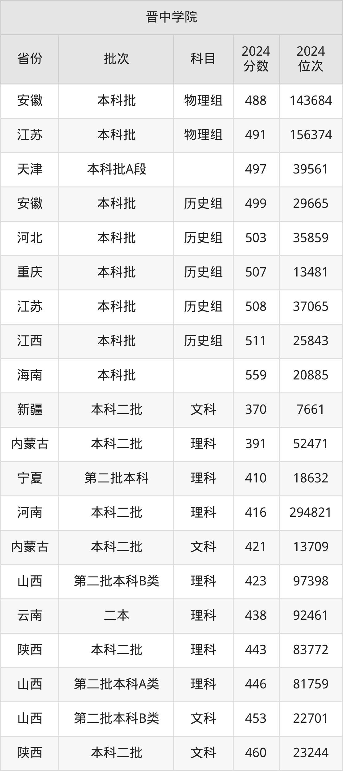 圆梦小编为2025届想要报考晋中学院的同学整理了:晋中学院2024年在全国24个省的最低分及录取位次。