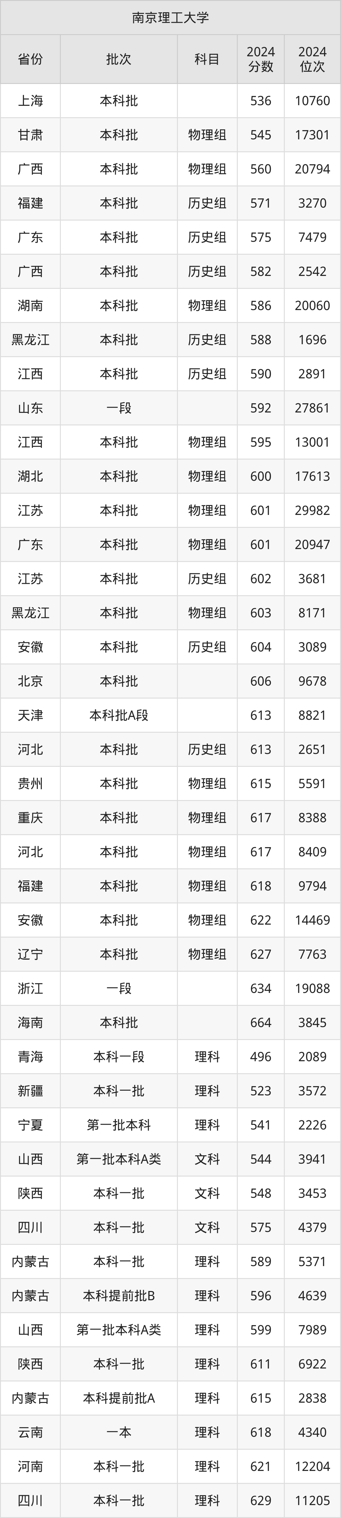 二、南京理工大学2024年录取分数线汇总