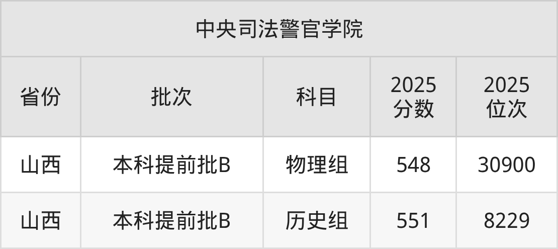二、中央司法警官学院2025年录取分数线汇总