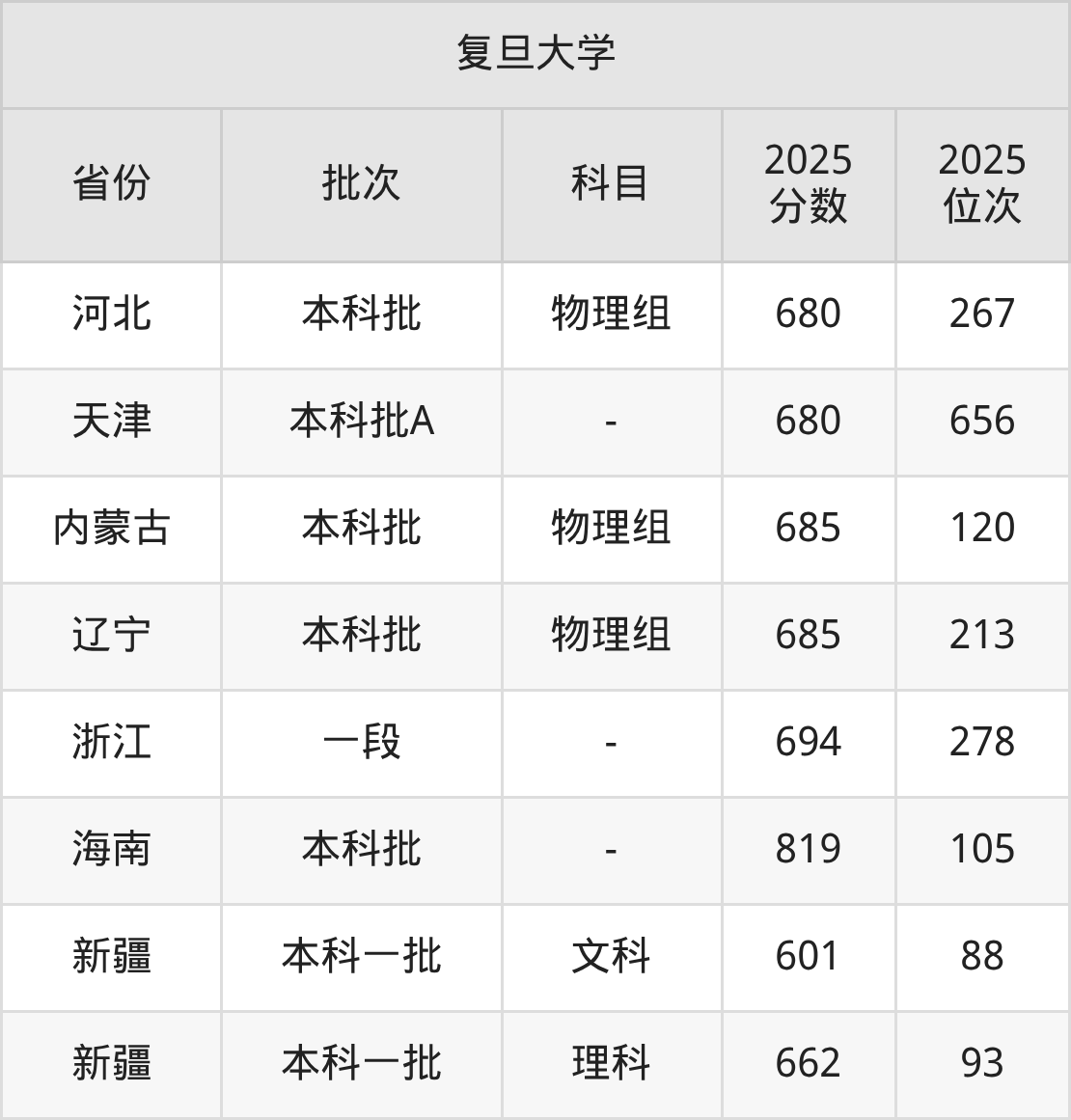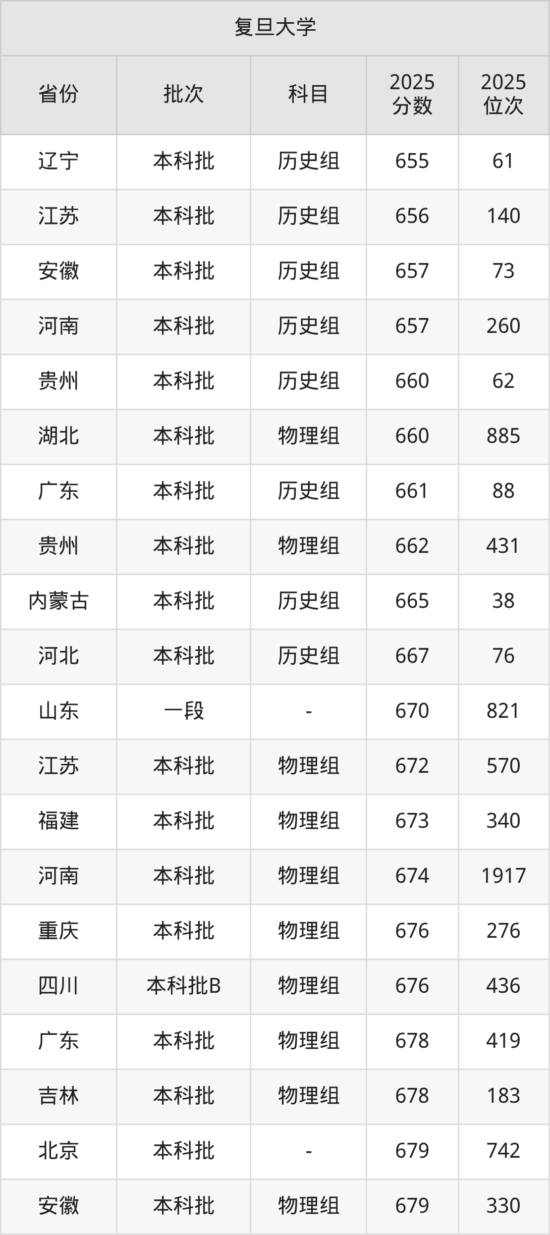 圆梦小编为2026届想要报考复旦大学的同学整理了:复旦大学2025年在全国27个省的最低分及录取位次。