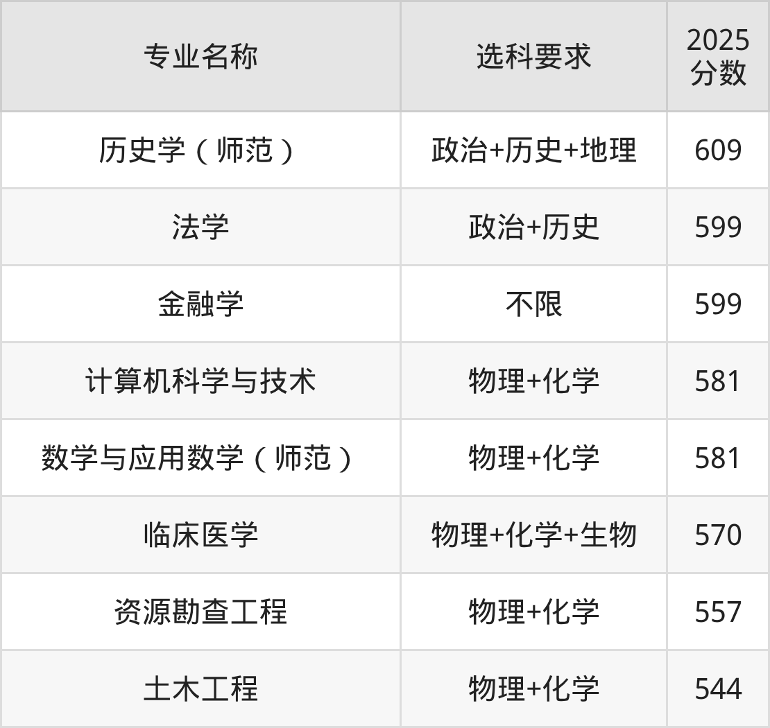 对于浙江高三学生而言,西藏大学热门专业是:历史学、法学、金融学、计算机科学与技术、数学与应用数学、临床医学、资源勘查工程、土木工程,2025年在浙江的最低分是544至609。