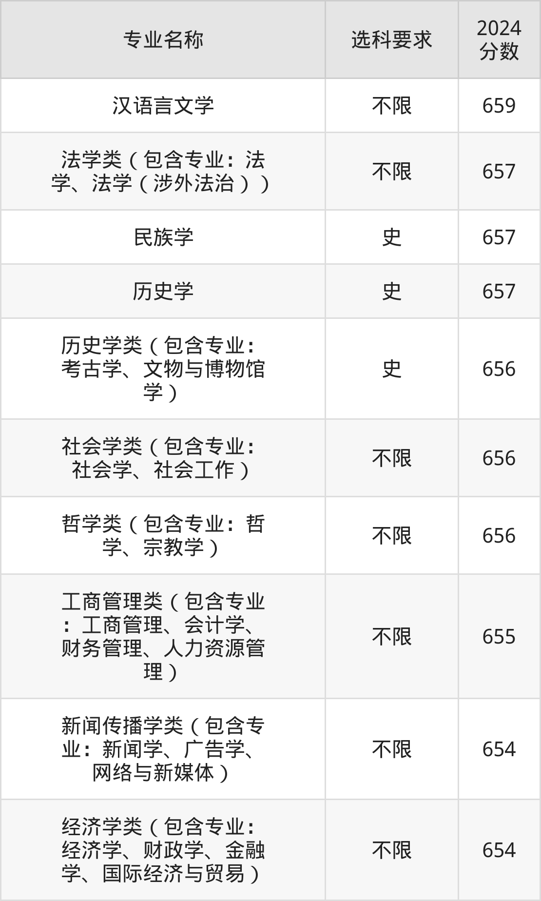 | 哲学类(包含专业:哲 学、宗教学) | 不限 | 612 |