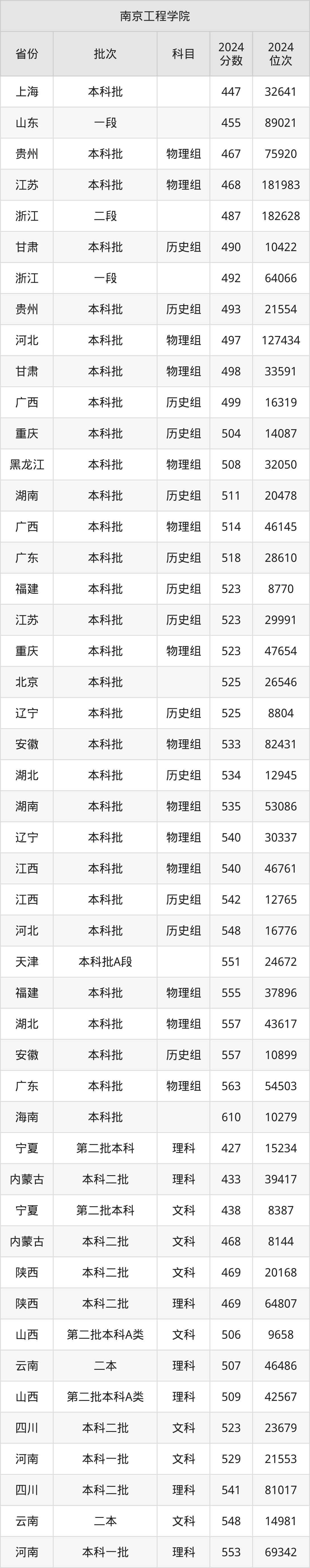 二、南京工程学院2024年录取分数线汇总