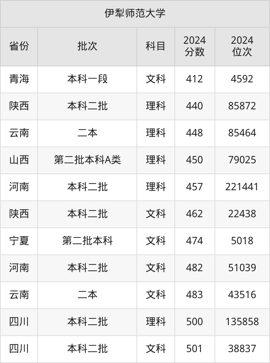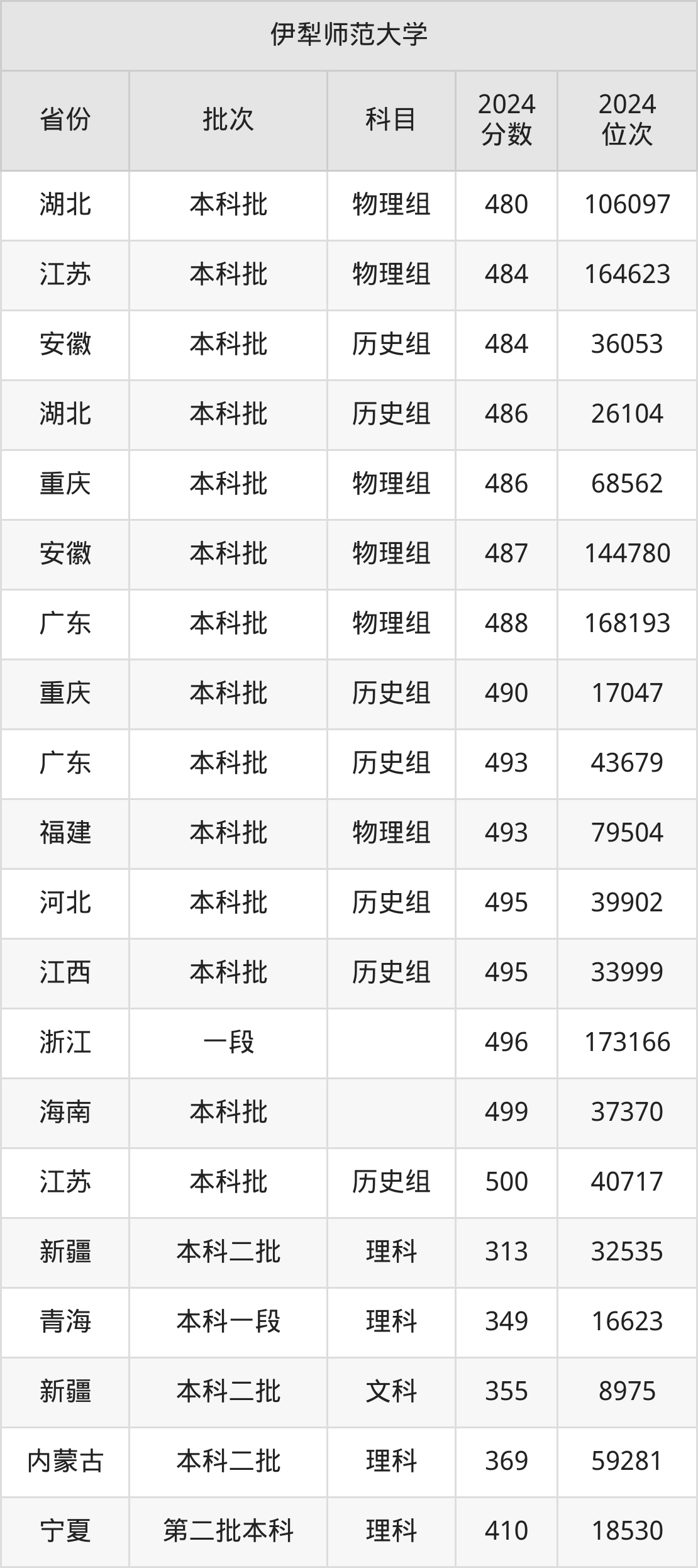 二、伊犁师范大学2024年录取分数线汇总