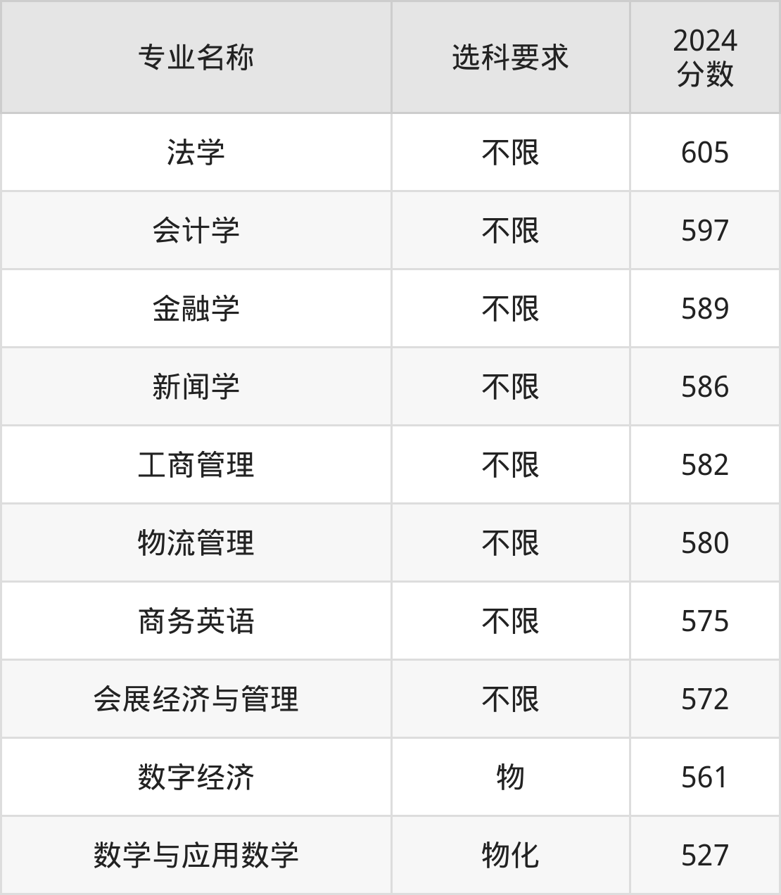 | 专业名称 | 选科要求 | 2024 分数 |