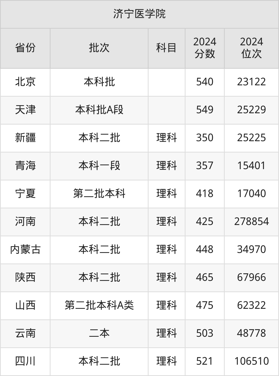 二、济宁医学院2024年录取分数线汇总