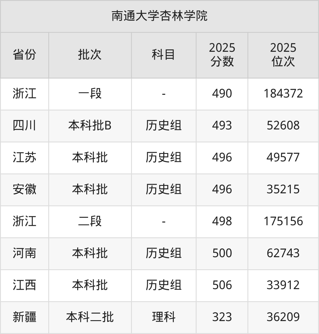 二、南通大学杏林学院2025年录取分数线汇总