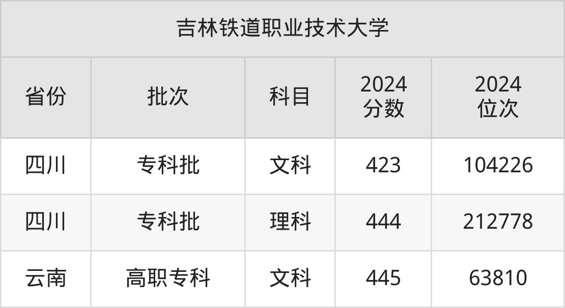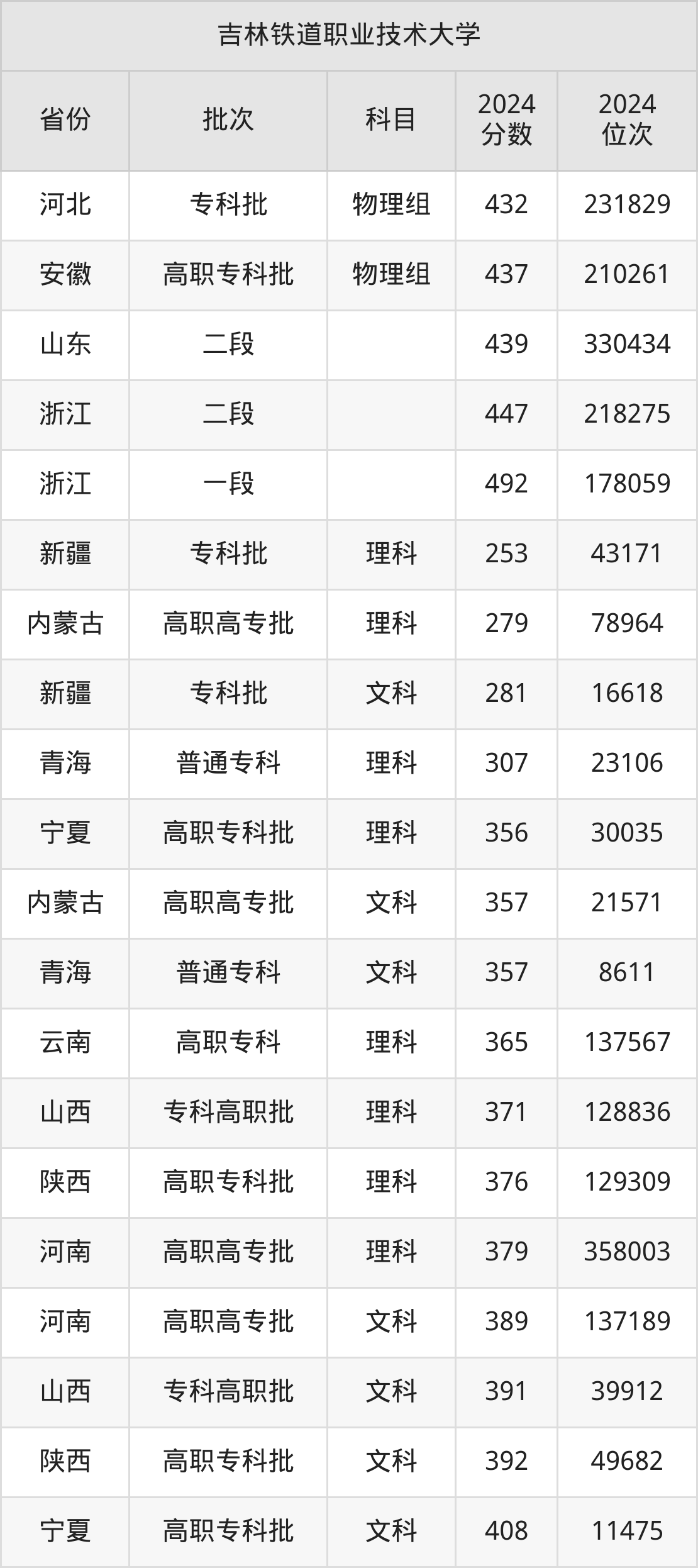 二、吉林铁道职业技术大学2024年录取分数线汇总
