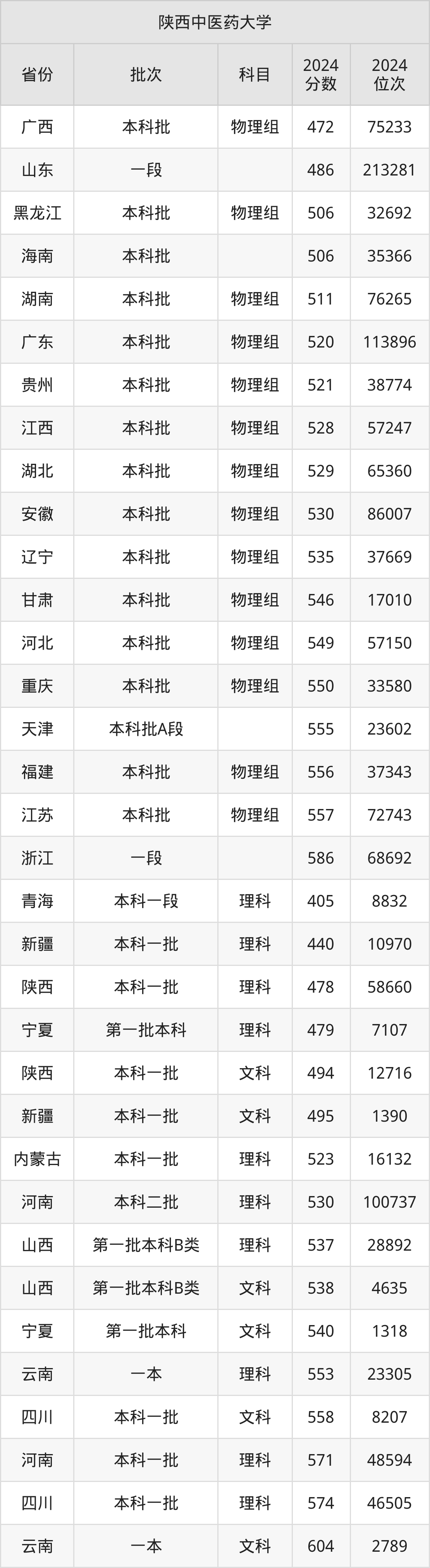 圆梦小编为2025届想要报考陕西中医药大学的同学整理了:陕西中医药大学2024年在全国27个省的最低分及录取位次。