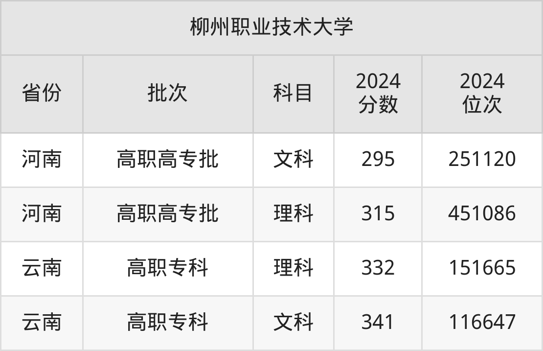 圆梦小编为2025届想要报考柳州职业技术大学的同学整理了:柳州职业技术大学2024年在全国11个省的最低分及录取位次。