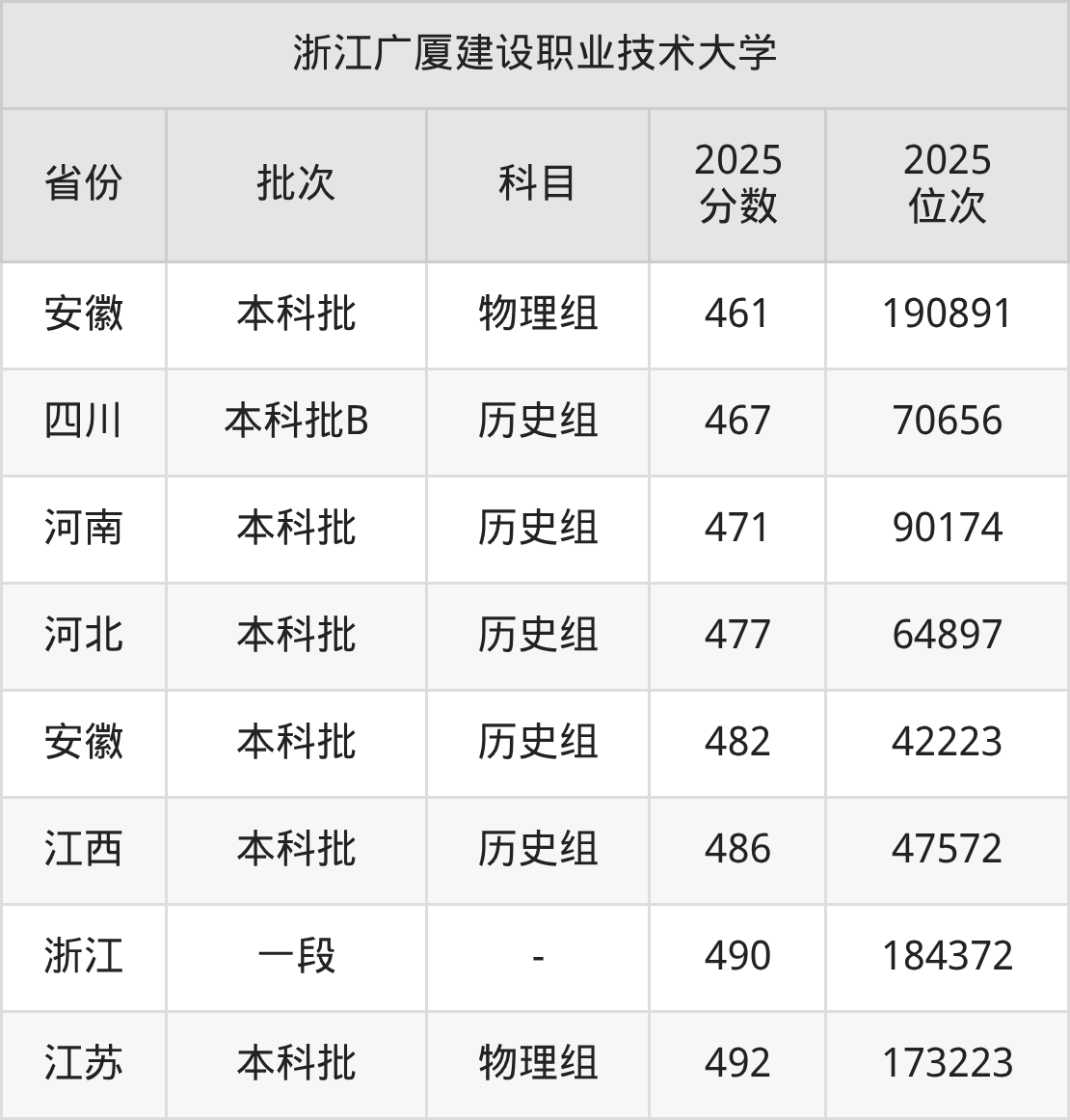 圆梦小编为2026届想要报考浙江广厦建设职业技术大学的同学整理了:浙江广厦建设职业技术大学2025年在全国11个省的最低分及录取位次。