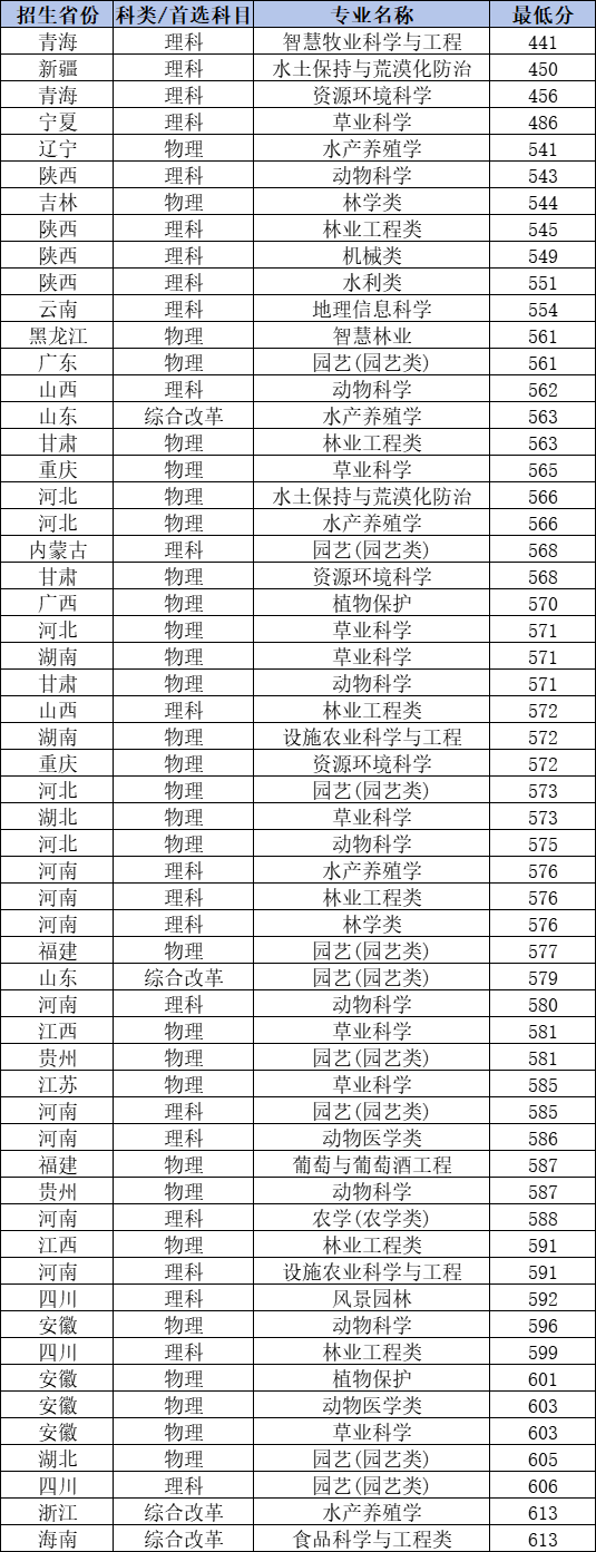 以2024年高考招录数据为例,西北农林科技大学高校专项计划在全国各省招生分数范围位于441分~613分之间。其中陕西考生理科最低需543分(动物科学);江西考生物理类最低需581分(草业科学)等。