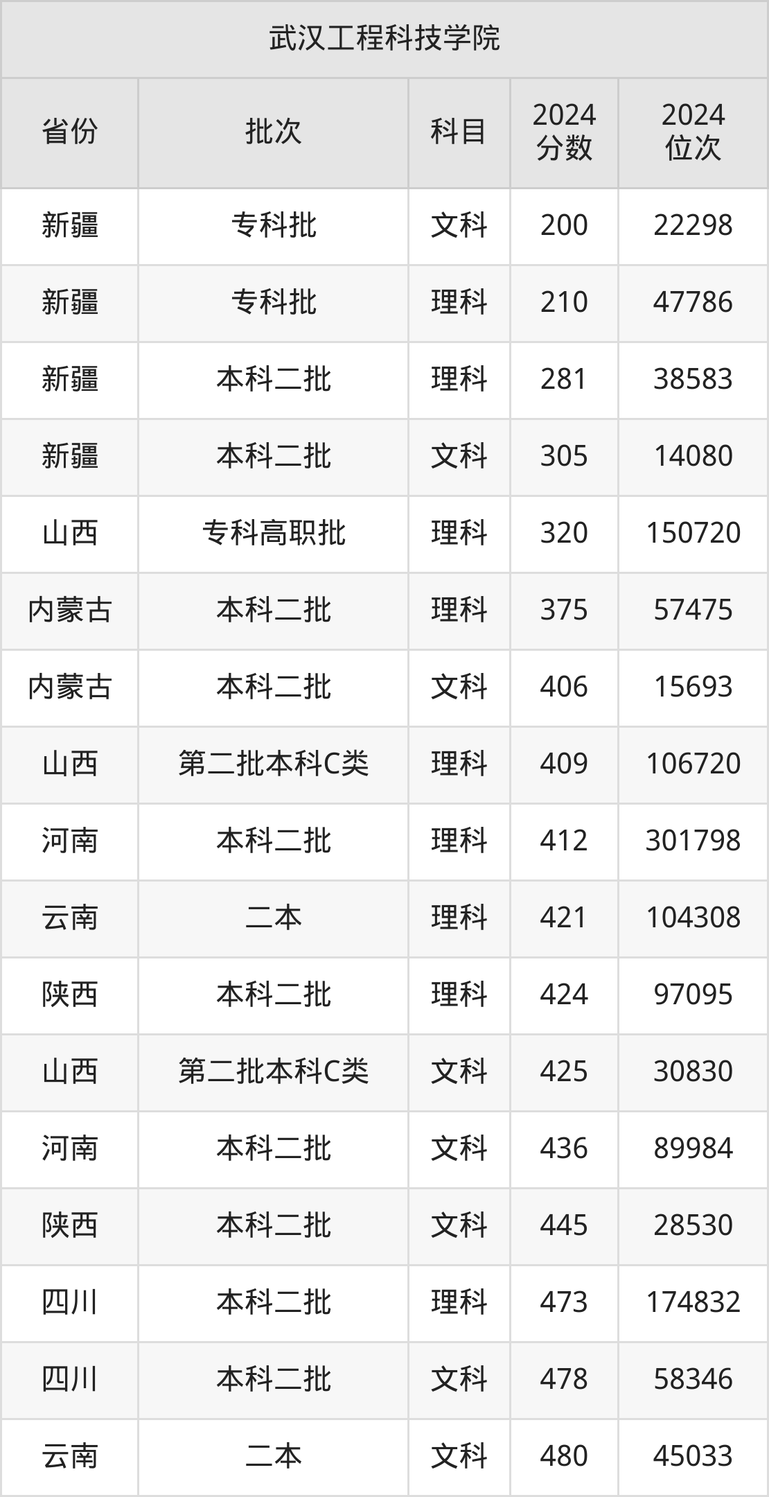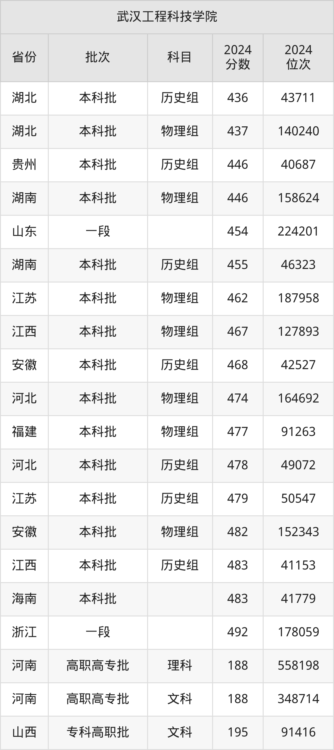 圆梦小编为2025届想要报考武汉工程科技学院的同学整理了:武汉工程科技学院2024年在全国21个省的最低分及录取位次。