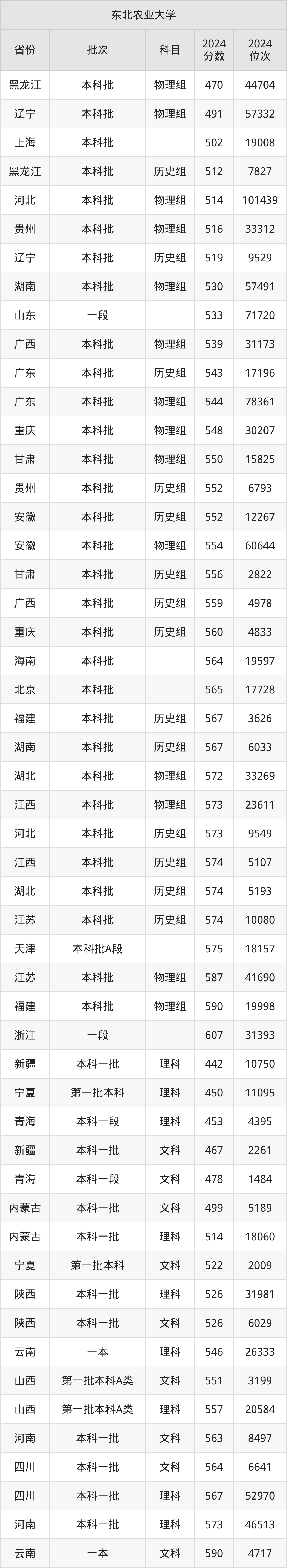 圆梦小编为2025届想要报考东北农业大学的同学整理了:东北农业大学2024年在全国29个省的最低分及录取位次。