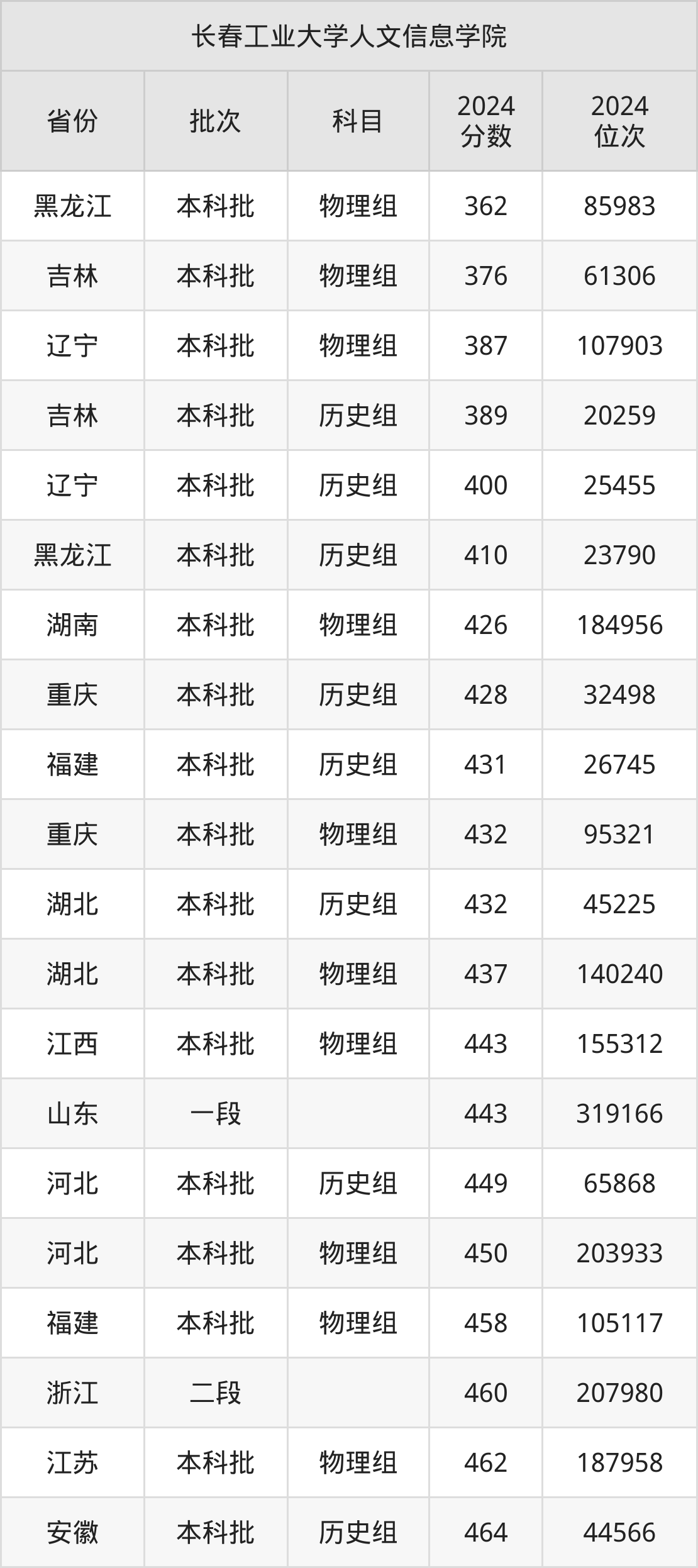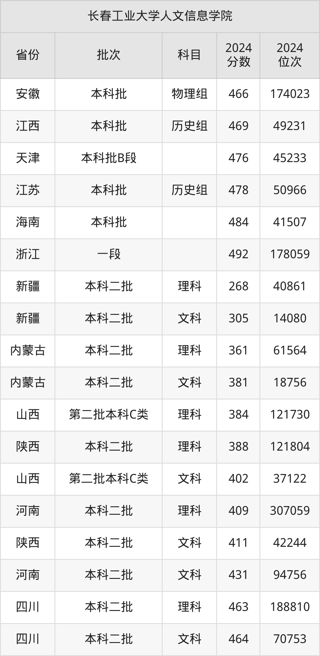 二、长春工业大学人文信息学院2024年录取分数线汇总