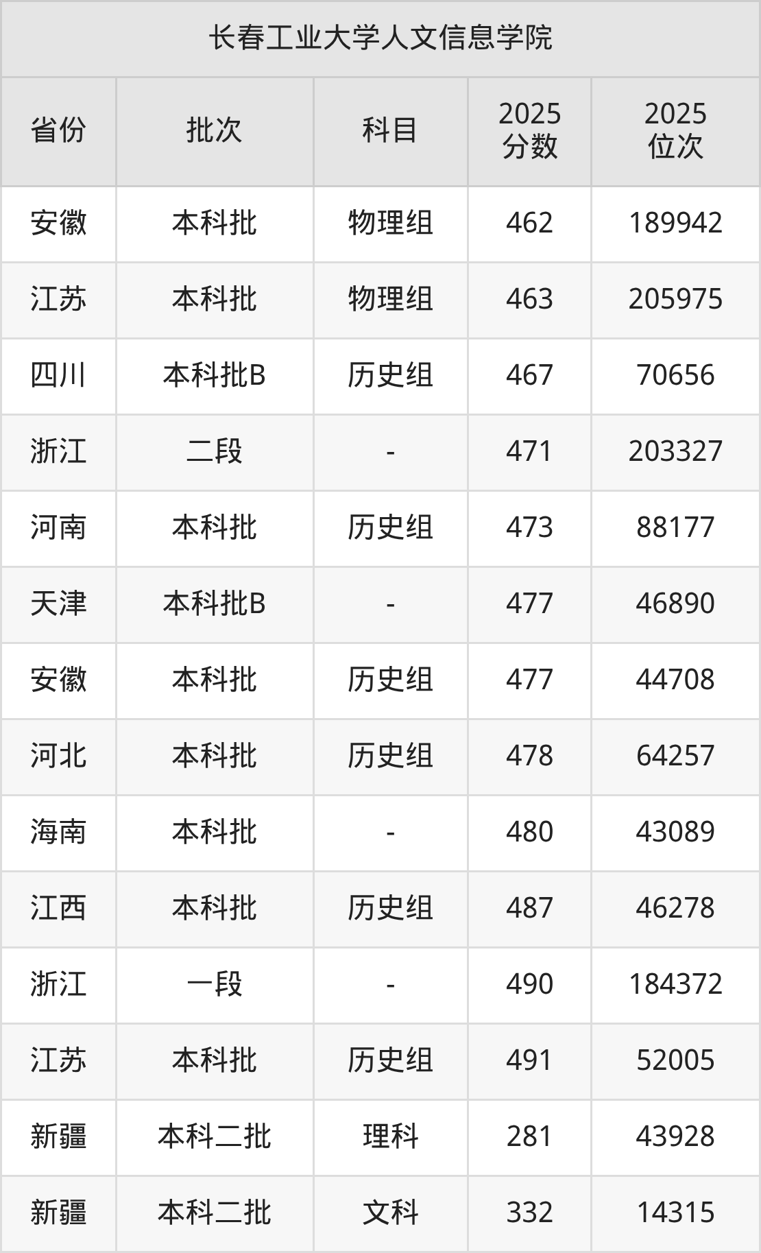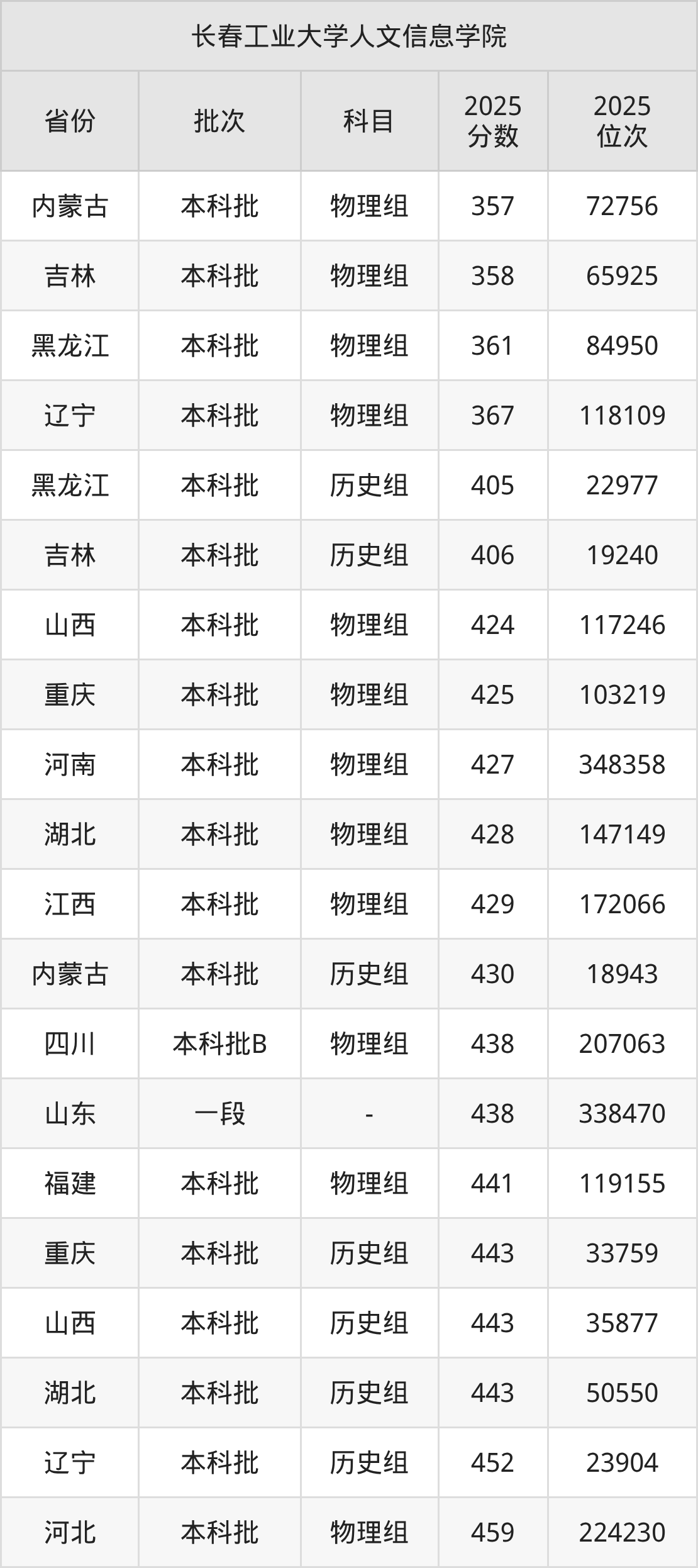 二、长春工业大学人文信息学院2025年录取分数线汇总