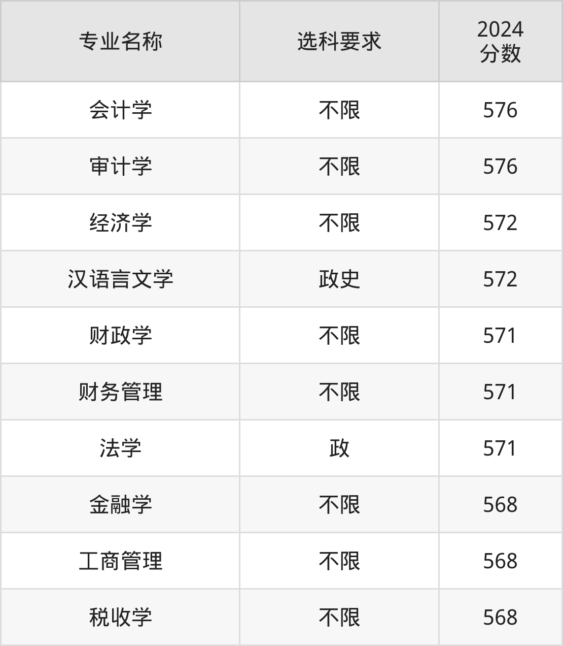 | 专业名称 | 选科要求 | 2024 分数 |