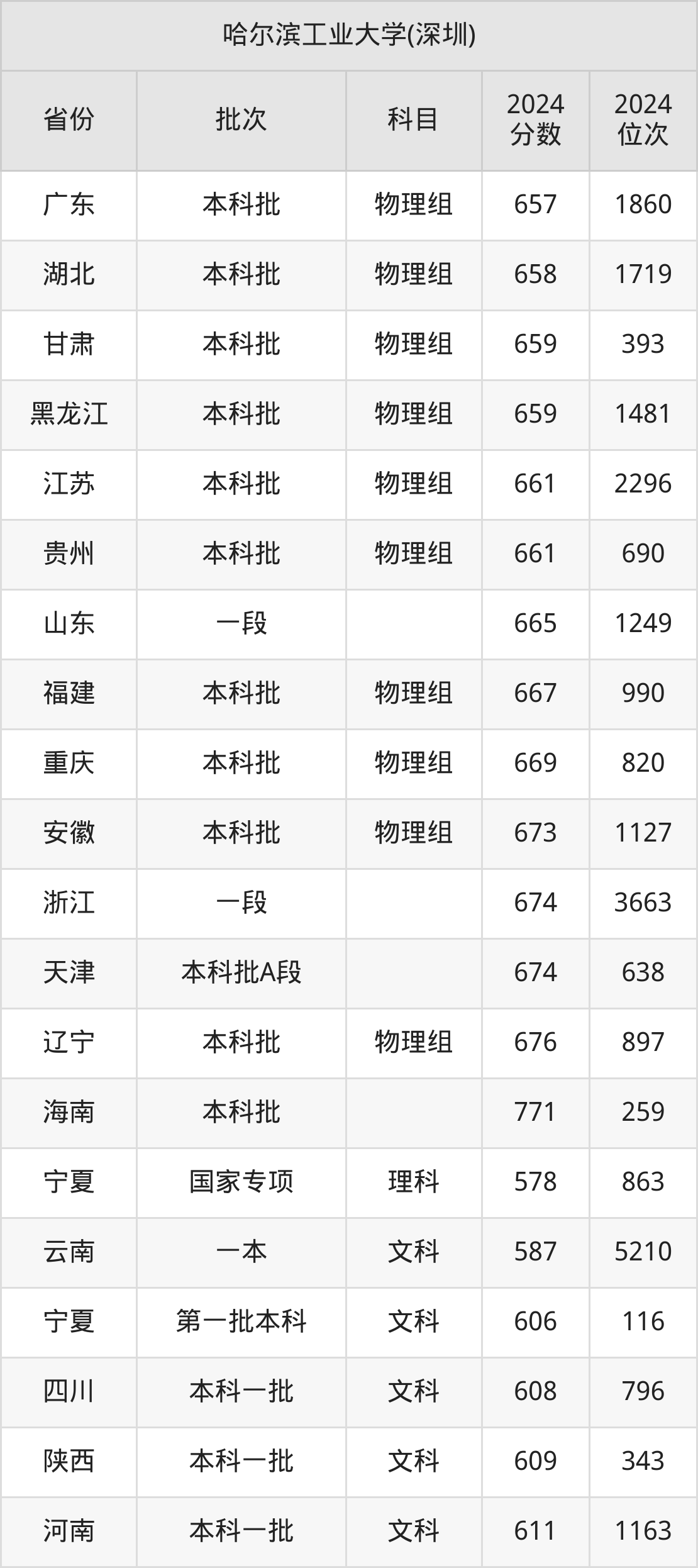 圆梦小编为2025届想要报考哈尔滨工业大学(深圳)的同学整理了:哈尔滨工业大学(深圳)2024年在全国25个省的最低分及录取位次。