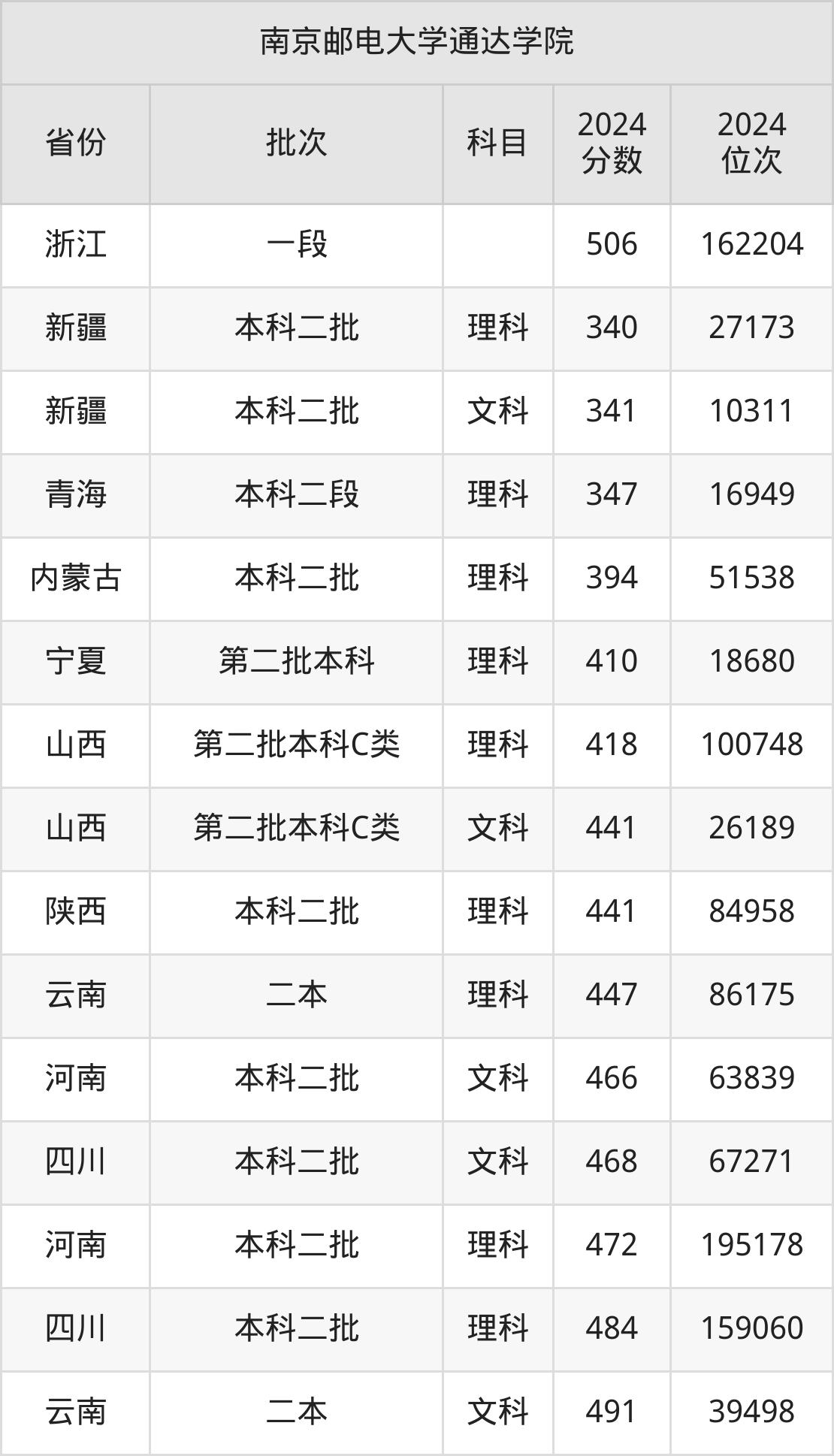 二、南京邮电大学通达学院2024年录取分数线汇总