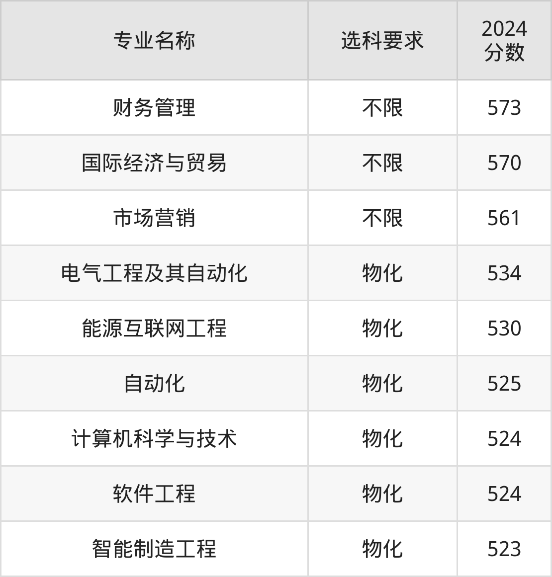 | 专业名称 | 选科要求 | 2024 分数 |