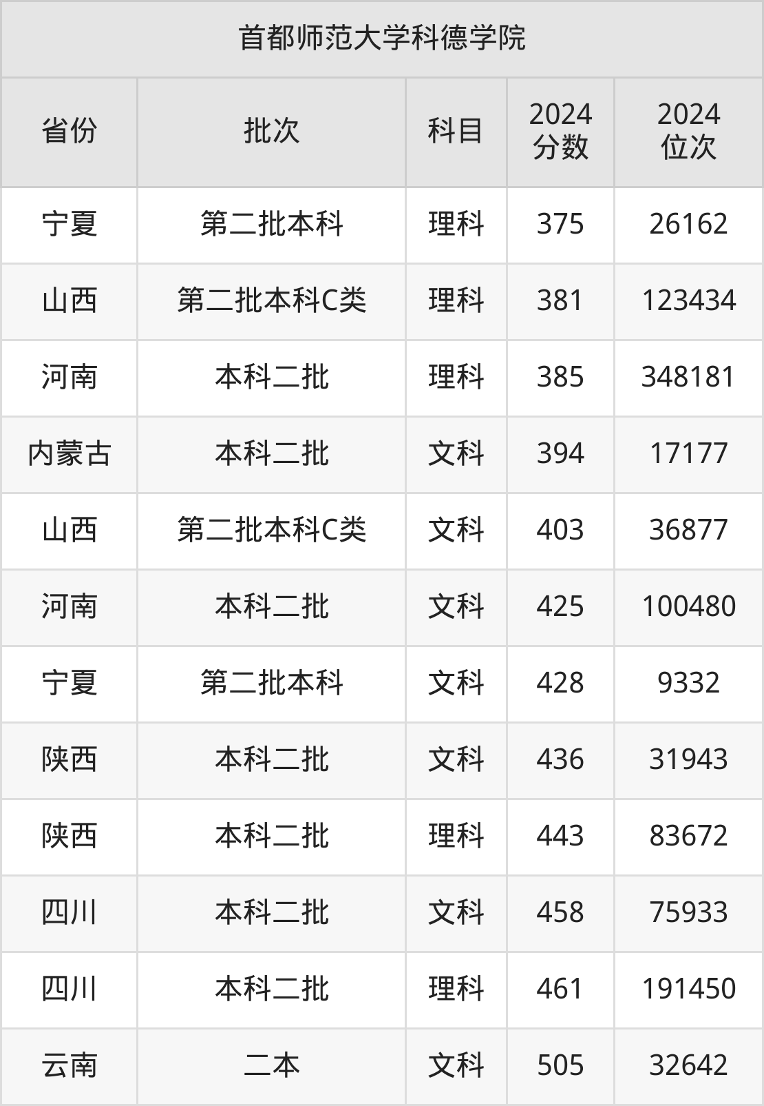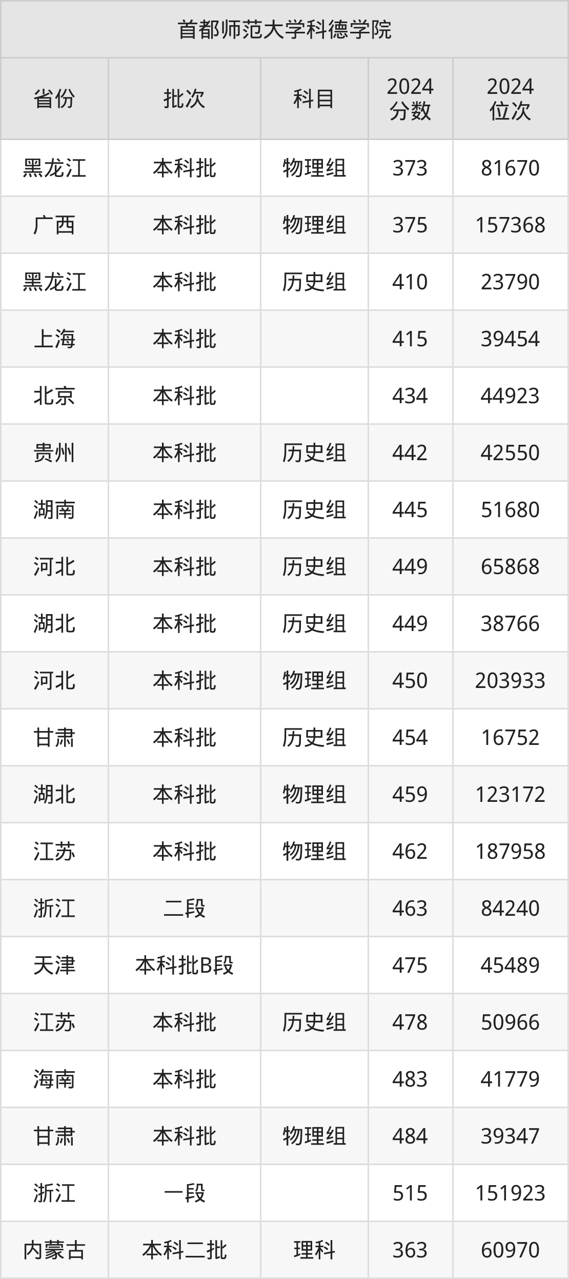 二、首都师范大学科德学院2024年录取分数线汇总