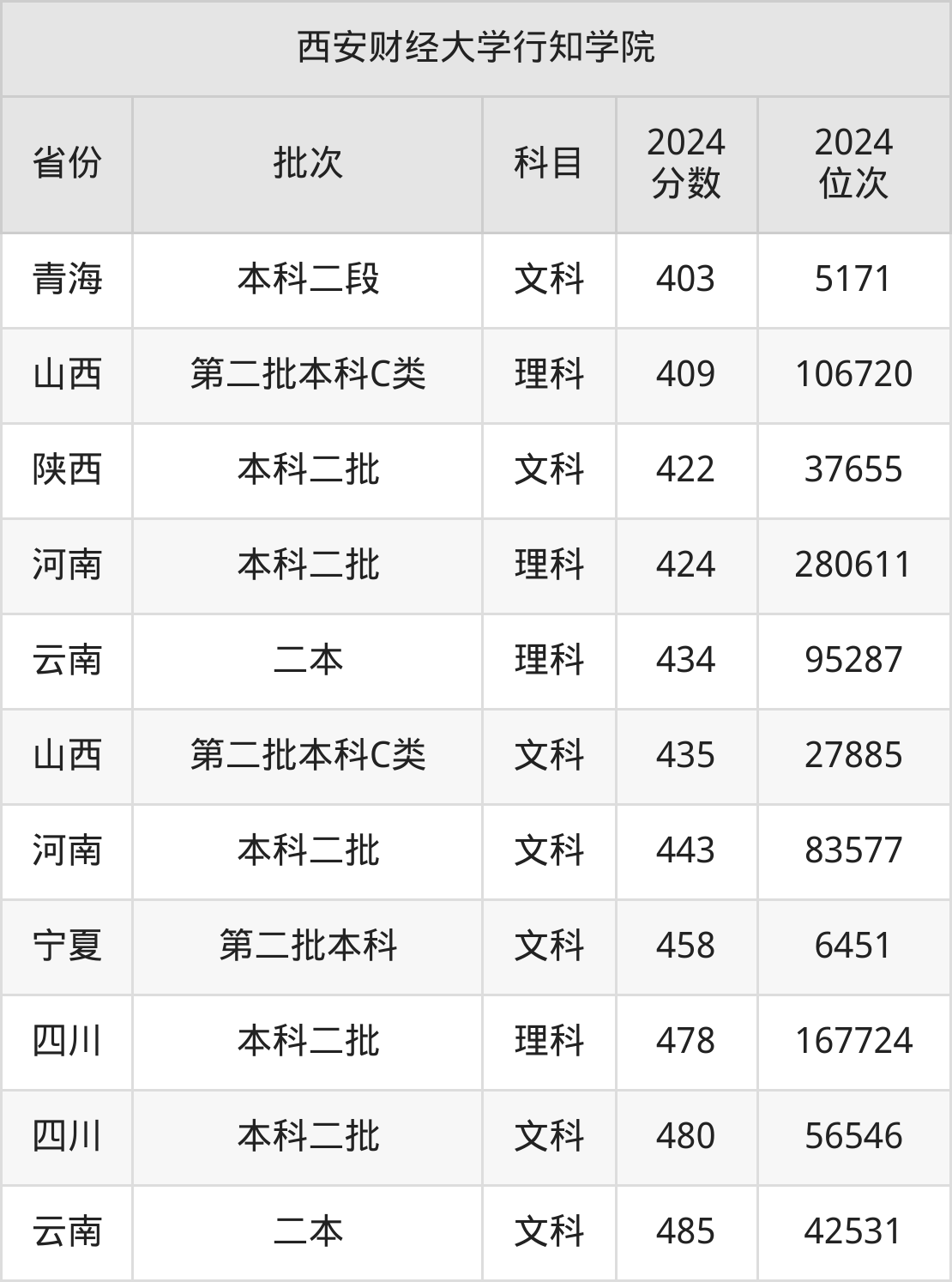 圆梦小编为2025届想要报考西安财经大学行知学院的同学整理了:西安财经大学行知学院2024年在全国18个省的最低分及录取位次。