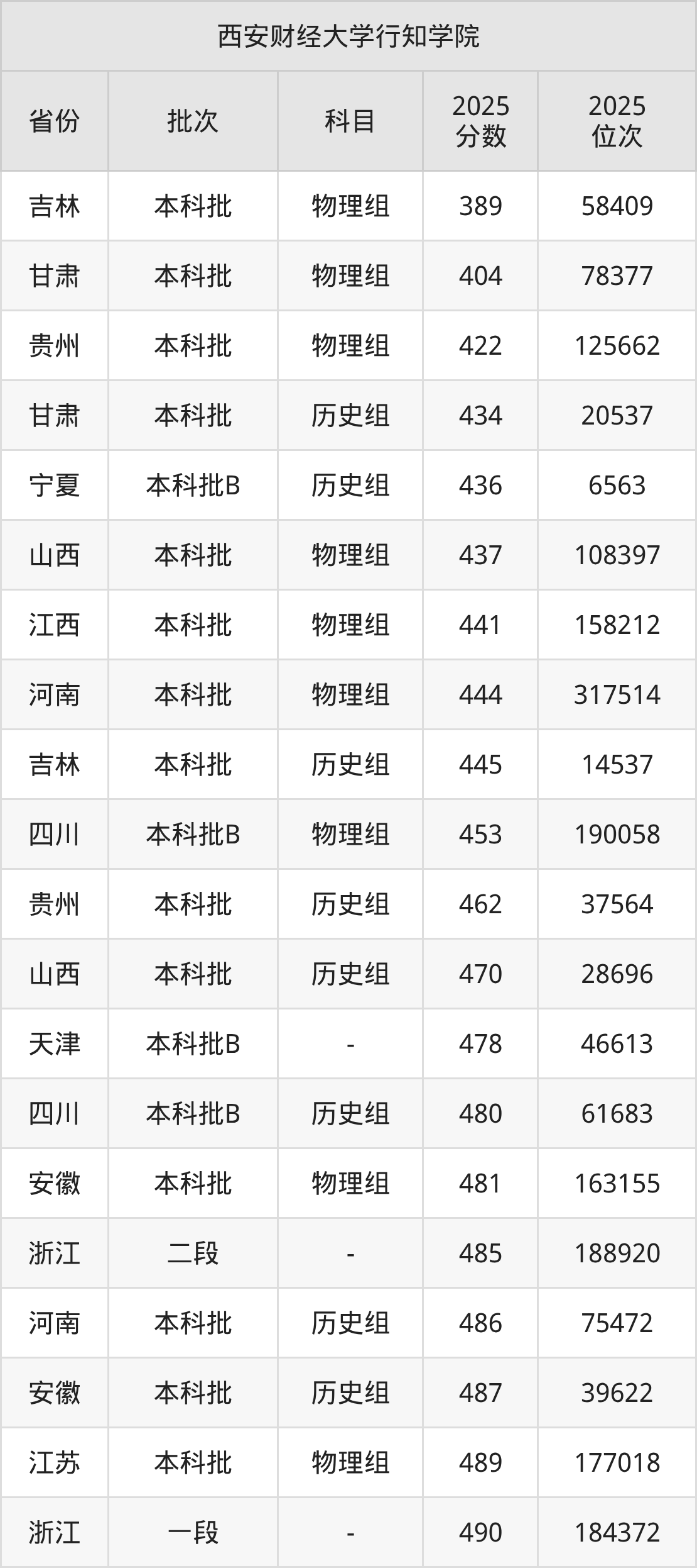 圆梦小编为2026届想要报考西安财经大学行知学院的同学整理了:西安财经大学行知学院2025年在全国15个省的最低分及录取位次。