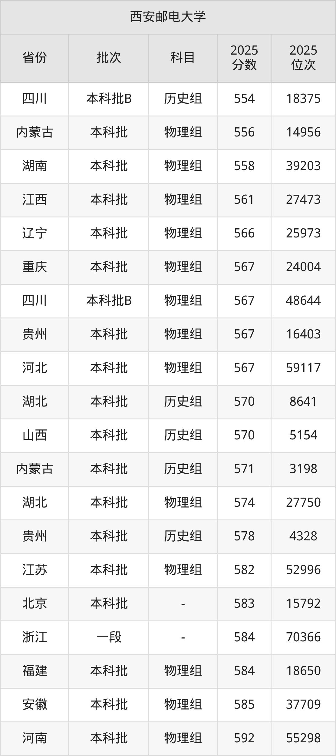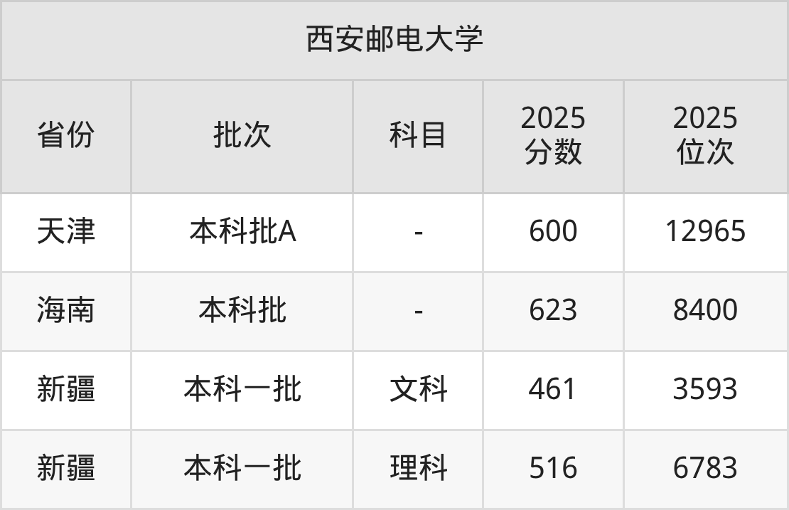 二、西安邮电大学2025年录取分数线汇总