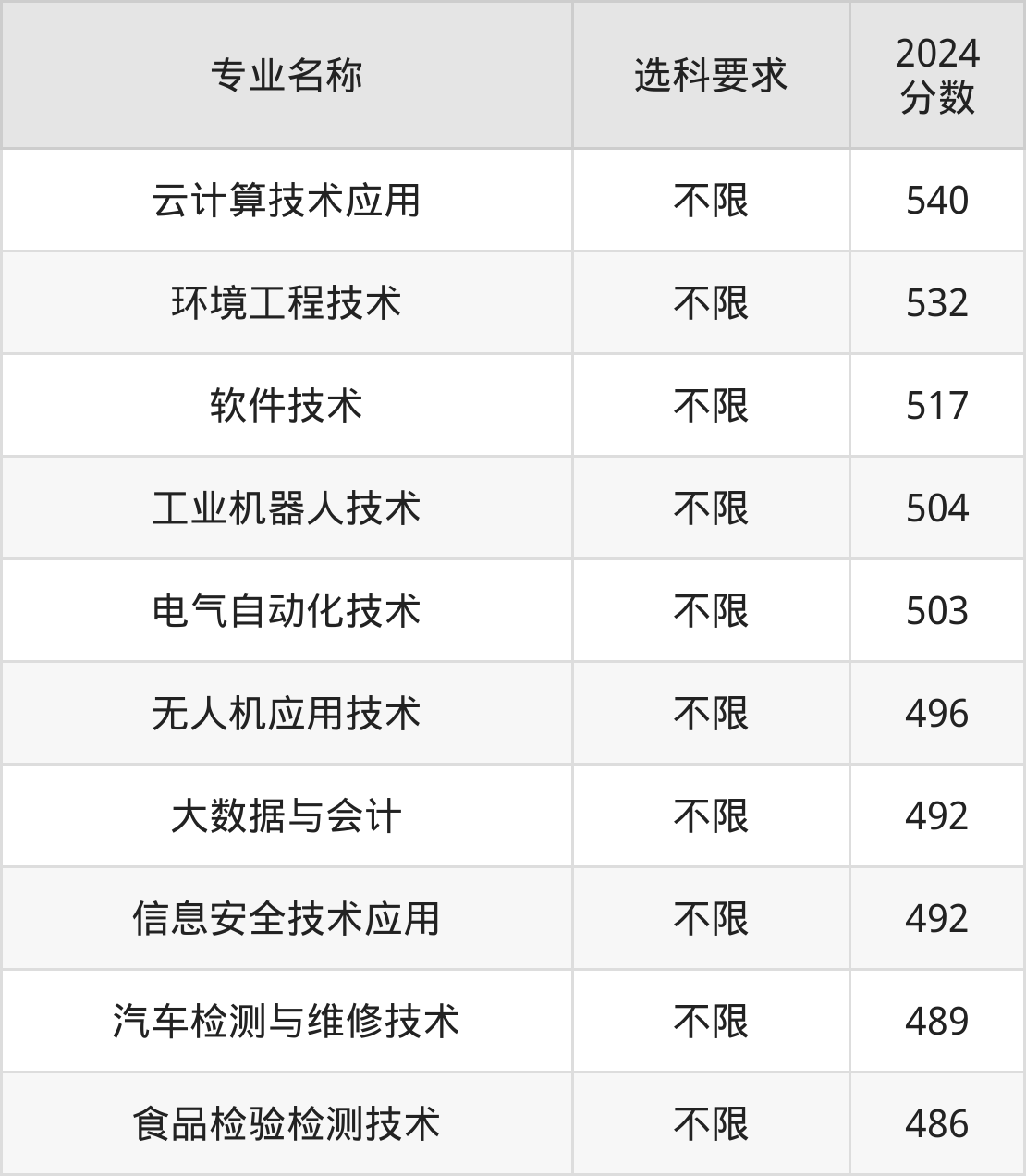 对于浙江高三学生而言,日照职业技术学院热门专业是:云计算技术应用、环境工程技术、软件技术、工业机器人技术、电气自动化技术、无人机应用技术、大数据与会计、信息安全技术应用、汽车检测与维修技术、食品检验检测技术,2024年在浙江的最低分是486至540。