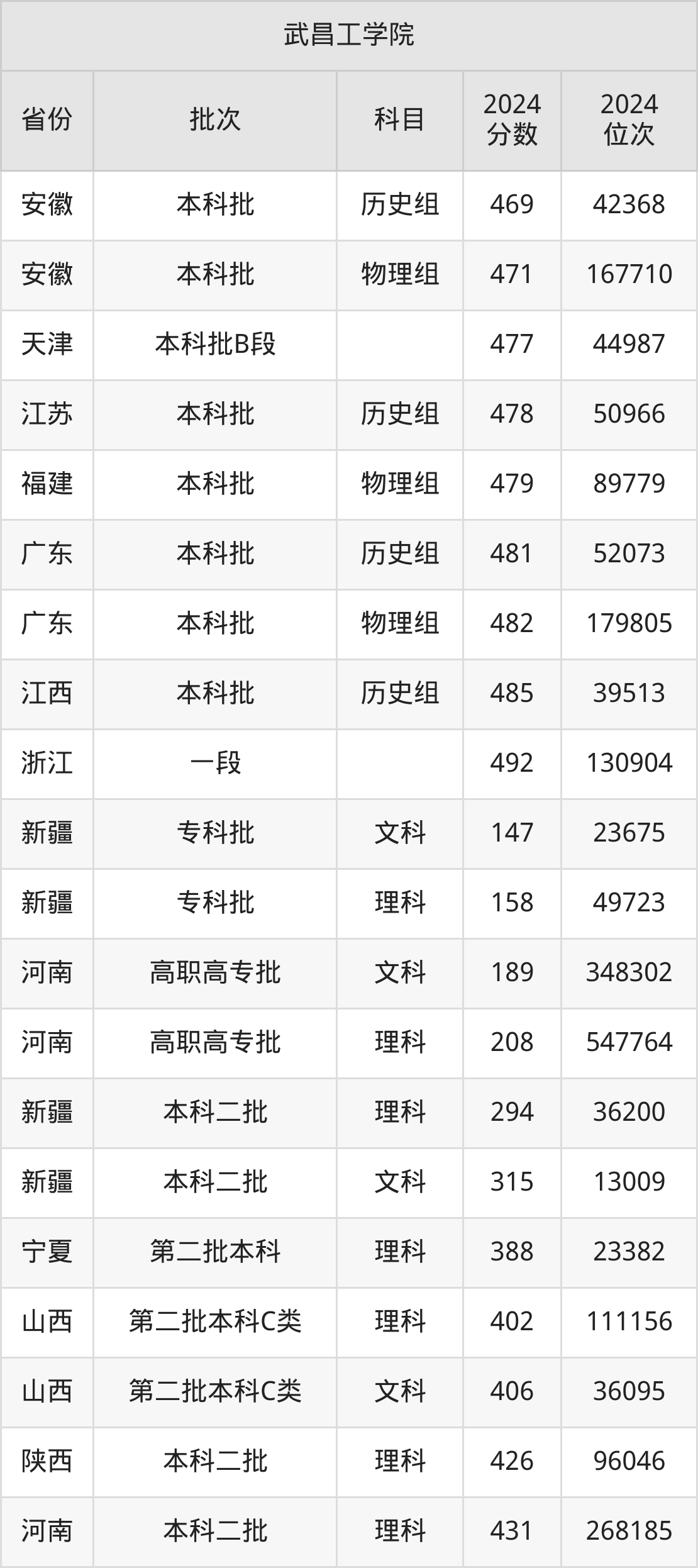 二、武昌工学院2024年录取分数线汇总