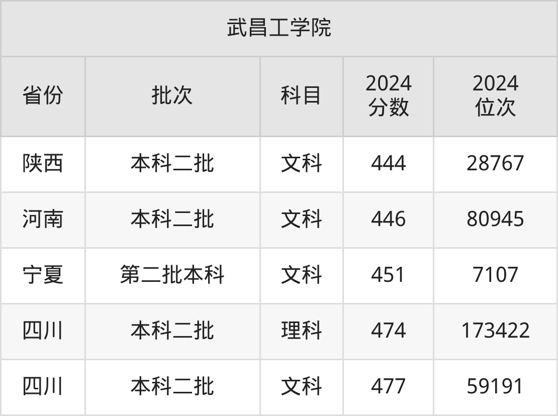 圆梦小编为2025届想要报考武昌工学院的同学整理了:武昌工学院2024年在全国20个省的最低分及录取位次。